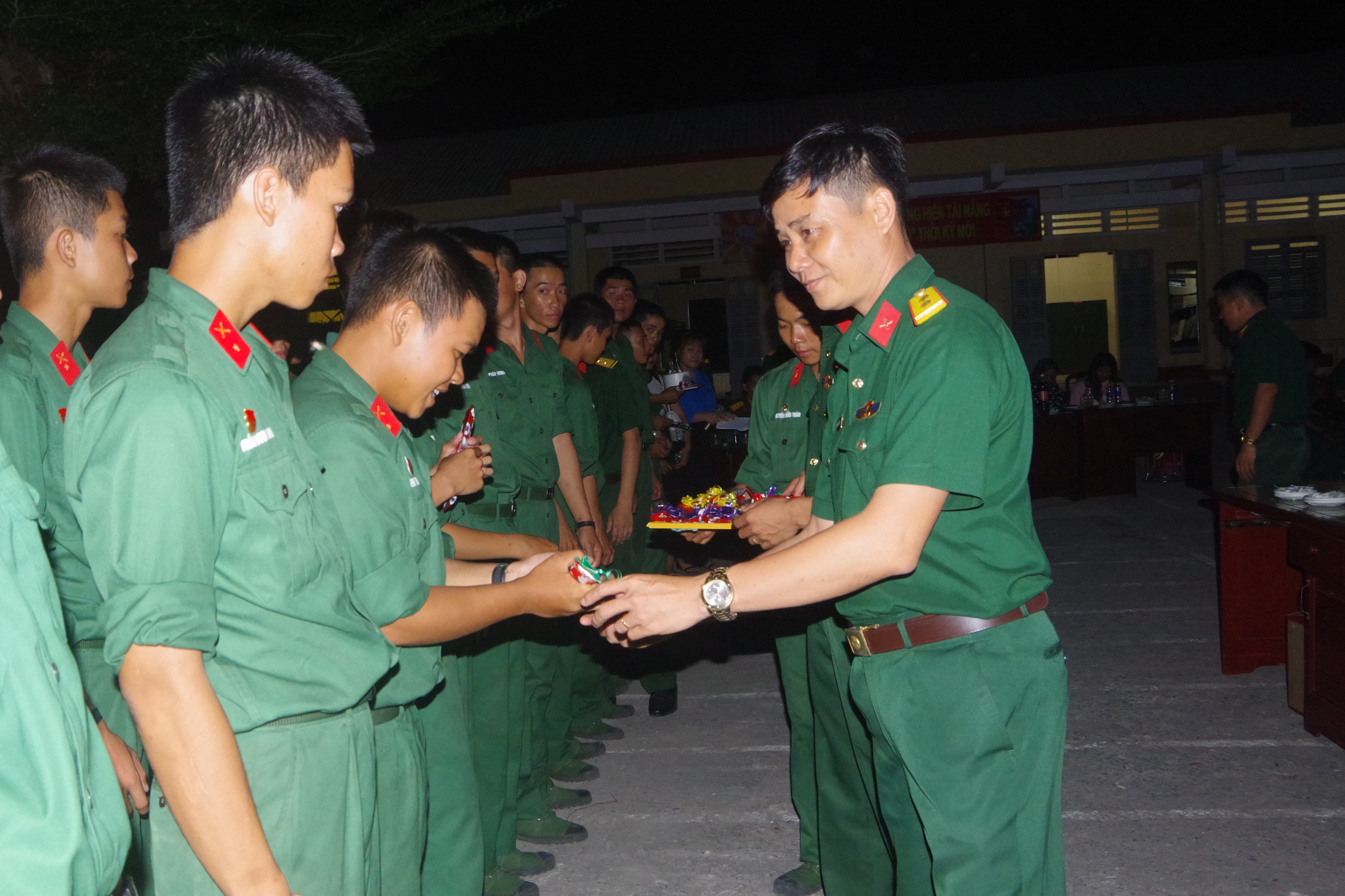 Chỉ huy đơn vị tặng quà cho các chiến sĩ.