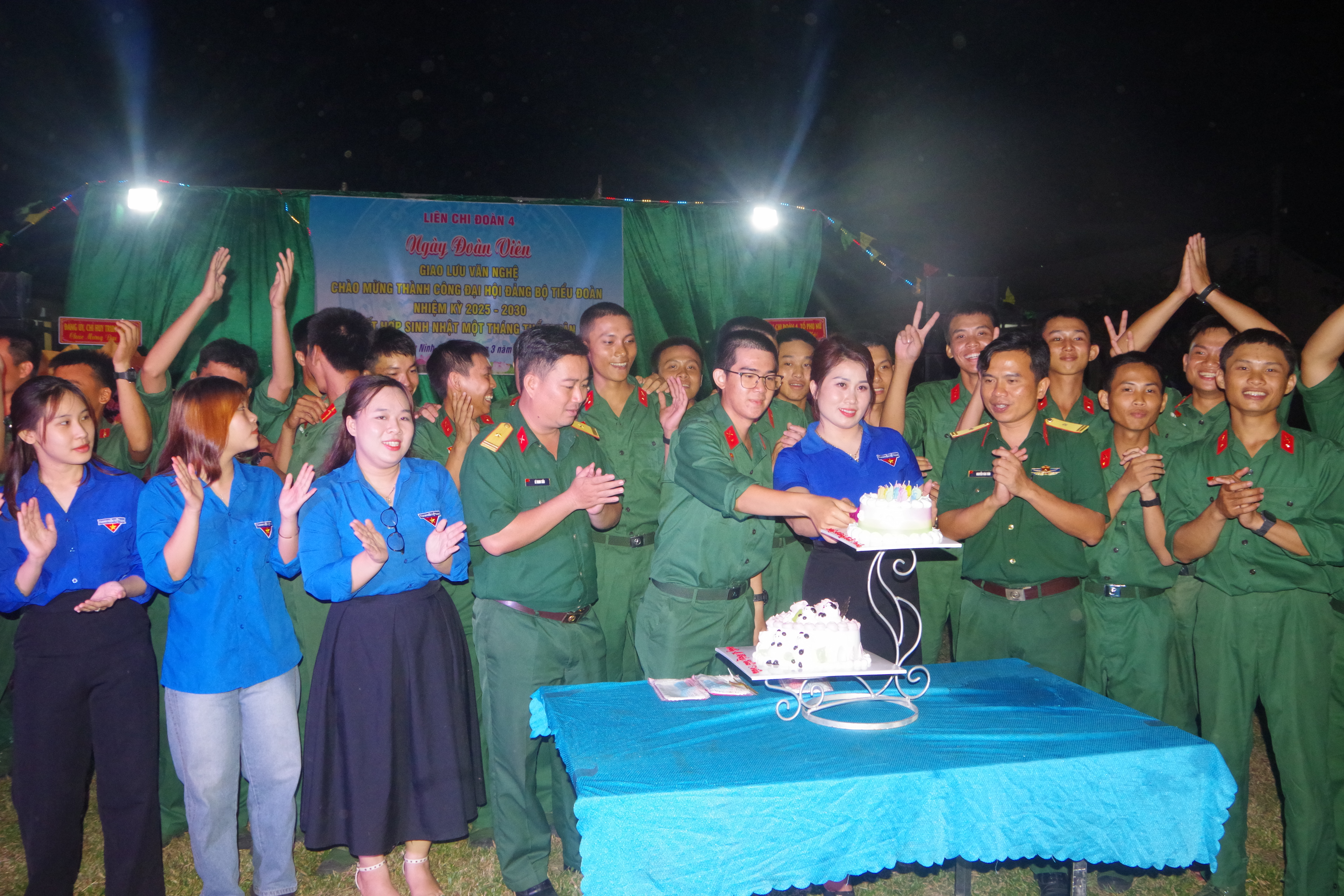 Giây phút cắt bánh sinh nhật, những tiếng vỗ tay, những nụ cười rạng rỡ trên gương mặt các chiến sĩ, bài hát “Chúc mừng sinh nhật”, “Hát mãi khúc quân hành” vang lên trong sự hòa giọng của tất cả mọi người, làm không khí buổi sinh nhật thêm sôi động, ấm áp.