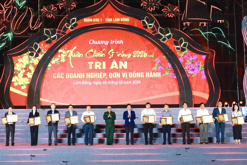 Trước khi diễn ra chương trình nghệ thuật, Bộ Tư lệnh Quân khu 7 đã tổ chức chương trình tri ân các đơn vị, doanh nghiệp đồng hành cùng Chương trình “Xuân Chiến sĩ” lần thứ XI năm 2026.