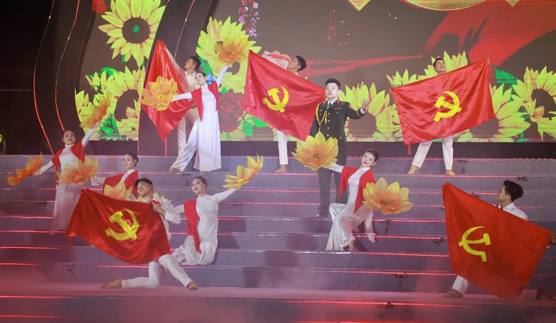 Tiết mục nghệ thuật ca ngợi Đảng quang vinh.