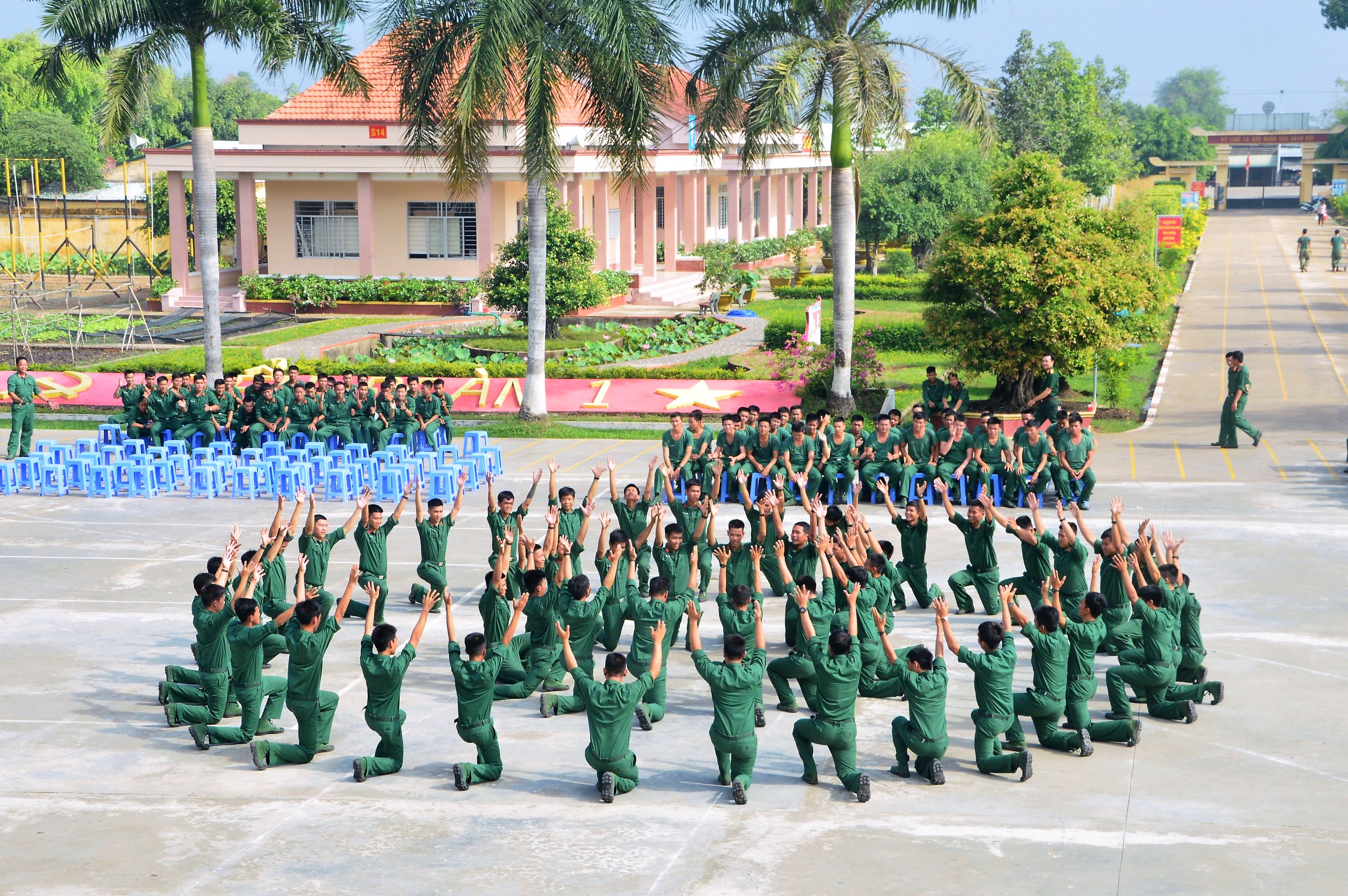 Mở đầu chương trình, màn đồng diễn tập thể điệu nhảy dân vũ của 50 chiến sĩ mới do chi đoàn Đại đội 1 thể hiện trên nền nhạc các bài hát: Nối vòng tay lớn, Bác đang cùng chúng cháu hành quân… đã tạo được ấn tượng đối với ban giám khảo và người xem. Điệu nhảy giản dị, từng bước di chuyển nhẹ nhàng theo nhịp âm thanh nhưng kỹ thuật động tác của từng chiến sĩ rất chuyên nghiệp. Qua đó, thể hiện được tình đoàn kết, đồng lòng, thống nhất ý chí và hành động trong việc phát huy sức mạnh tập thể. Càng đi vào chương trình, người xem càng ngạc nhiên lẫn thán phục trước sức sáng tạo của các “diễn viên” không chuyên. Những màn nhảy sôi động của giới trẻ nhưng vẫn mang đậm chất lính. Xen lẫn là những điệu nhảy vui nhộn, nhí nhảnh của những câu chuyện cổ tích trong bài “Bống bống bang bang” đem chiến sĩ về với tuổi thơ thơ mộng. Từng tràng vỗ tay xen lẫn những tiếng reo hò cổ vũ, động viên của khán giả đã tạo nên sự hào hứng cho mỗi đội tham gia.