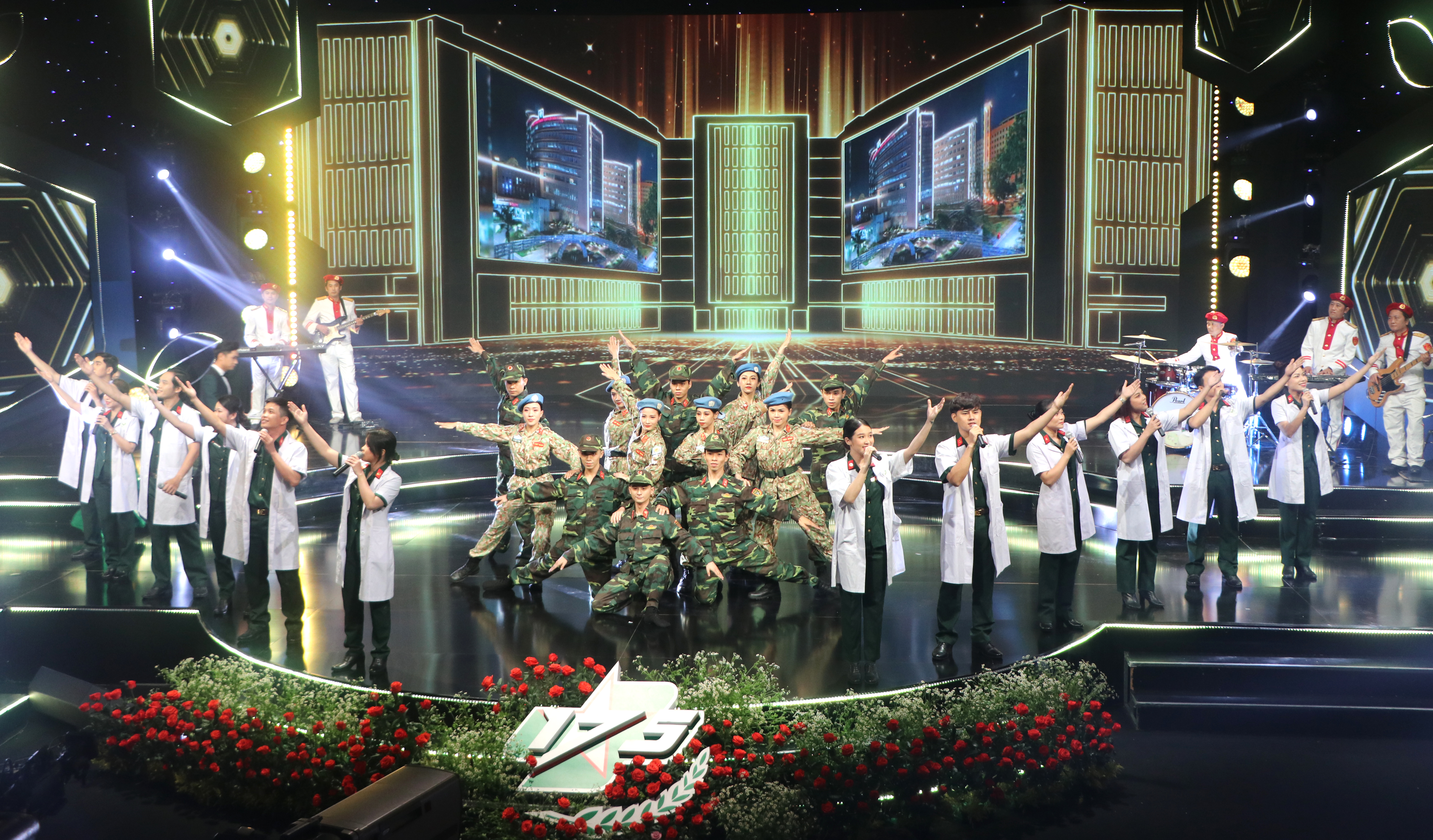 Tiết mục “Khúc quân hành Bệnh viện 175” do tập thể y, bác sĩ bệnh viện và nhóm múa Phương Việt trình bày.