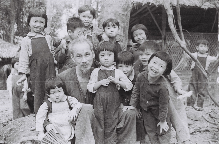 Lúc sinh thời, Chủ tịch Hồ Chí Minh luôn dành tình cảm đặc biệt cho các em thiếu nhi. Nhìn bức ảnh “Bác Hồ thăm lớp mẫu giáo tại chiến khu Việt Bắc ngày 19-5-1953”, người xem thấy rõ hình ảnh Người lãnh tụ vĩ đại của dân tộc giản dị, thân mật, gần gũi với các cháu thiếu nhi và nét mặt vui mừng của các cháu khi được ngồi bên Bác đã bộc lộ tình cảm thân thương, trìu mến mà các cháu dành cho Bác Hồ.