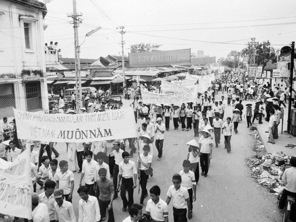 Nhân dân Sài Gòn ra đường mừng chiến thắng.
