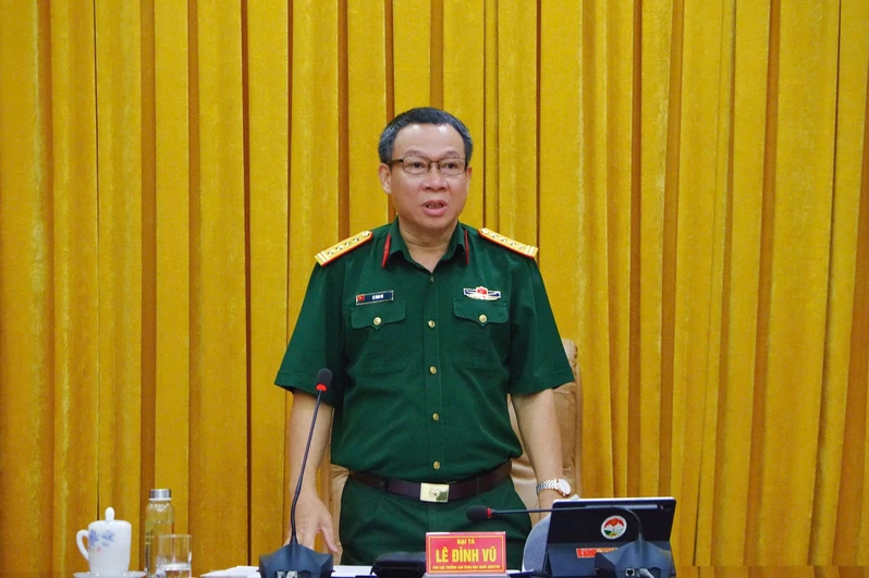 Đại tá Lê Đình Vũ, Phó cục trưởng Cục Khoa học Quân sự phát biểu tại buổi kiểm tra.