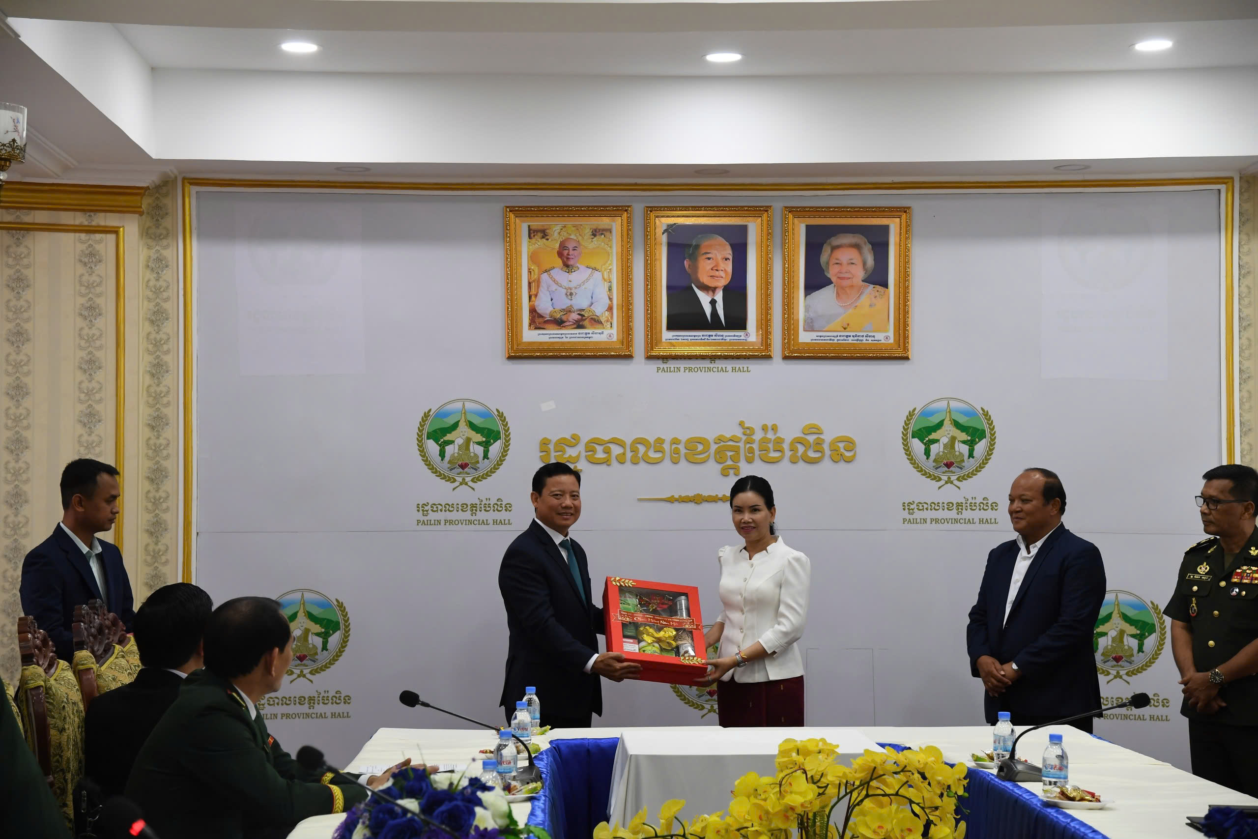 Đồng chí Phó Chủ tịch UBND tỉnh Phạm Tấn Hòa tặng quà chúc mừng năm mới lãnh đạo tỉnh Pailin.