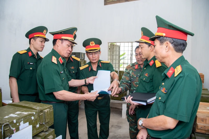 Đồng chí Phó Tư lệnh kiểm tra công tác kiểm kê kho đạn.
