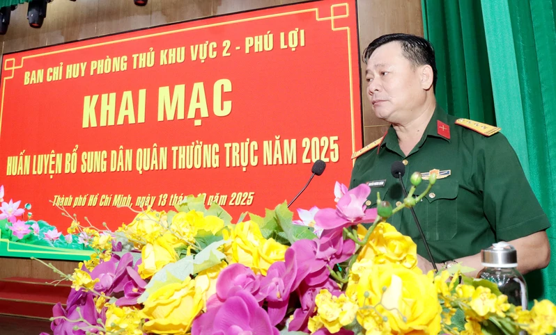 (QK7 Online) - Ngày 13/10, Ban chỉ huy Phòng thủ khu vực 2 - Phú Lợi, Bộ Tư lệnh Thành phố Hồ Chí Minh khai mạc huấn luyện cho 281 đồng chí dân quân thường trực năm thứ nhất của Ban CHQS 28 xã, phường trên địa bàn. Đến dự có Thượng tá Nguyễn Phương Khánh, Phó Chỉ huy trưởng, Ban chỉ huy Phòng thủ khu vực 2 - Phú Lợi.
