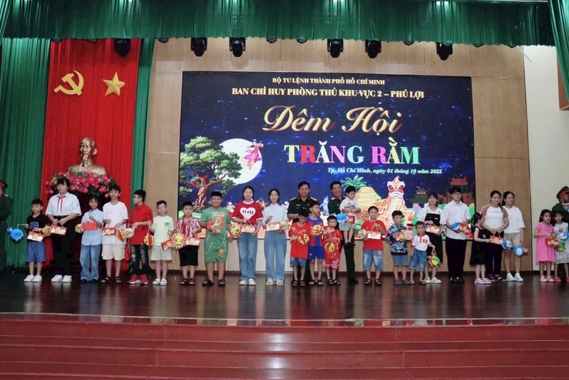 (QK7 Online) - Tối 01-10-2025, Ban Chỉ huy Phòng thủ Khu vực 2 - Phú Lợi (Bộ Tư lệnh TP.HCM) đã tổ chức đêm Hội trăng rằm vui tươi dành cho gần 300 em nhỏ là con em cán bộ, sĩ quan, Quân nhân chuyên nghiệp của đơn vị.