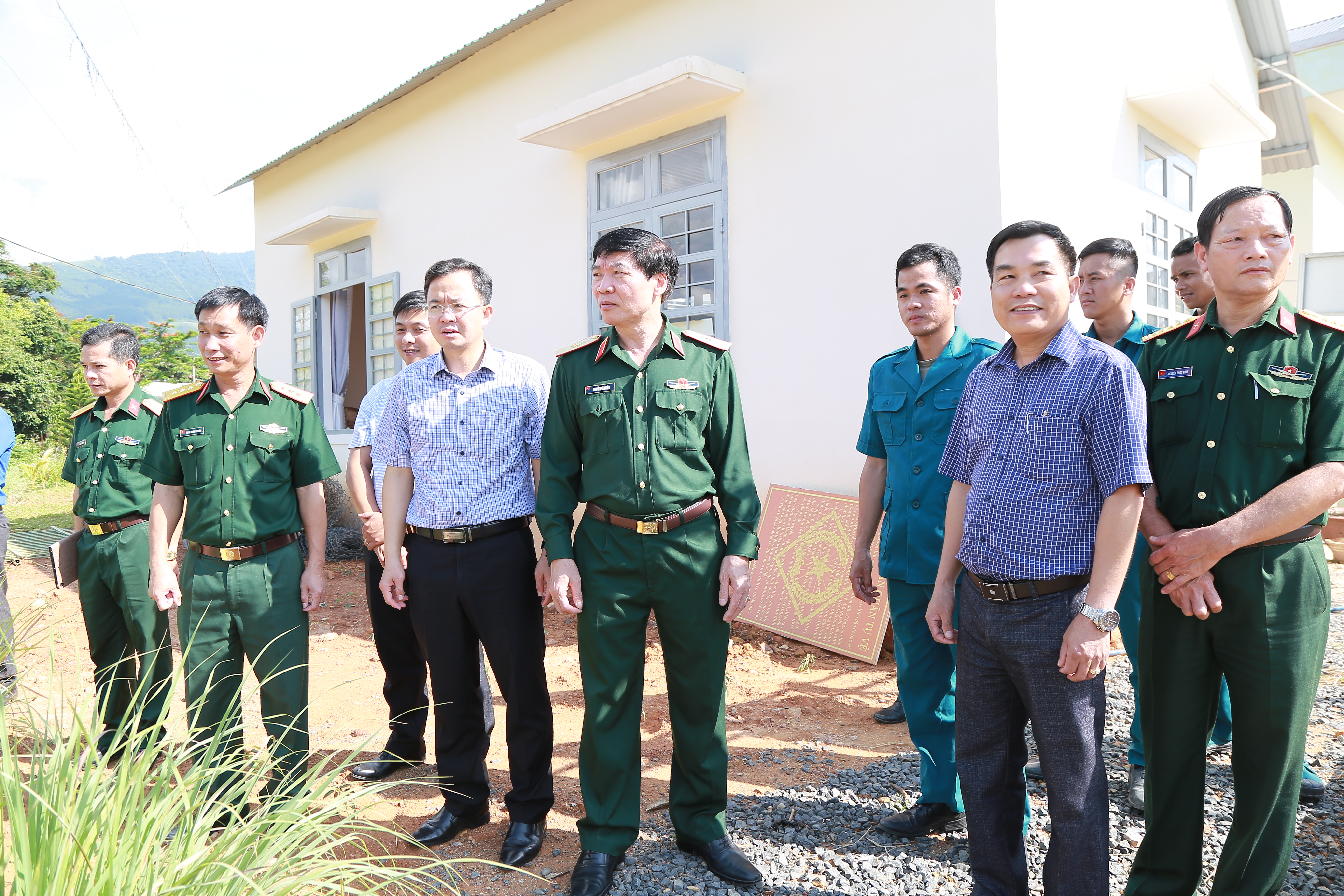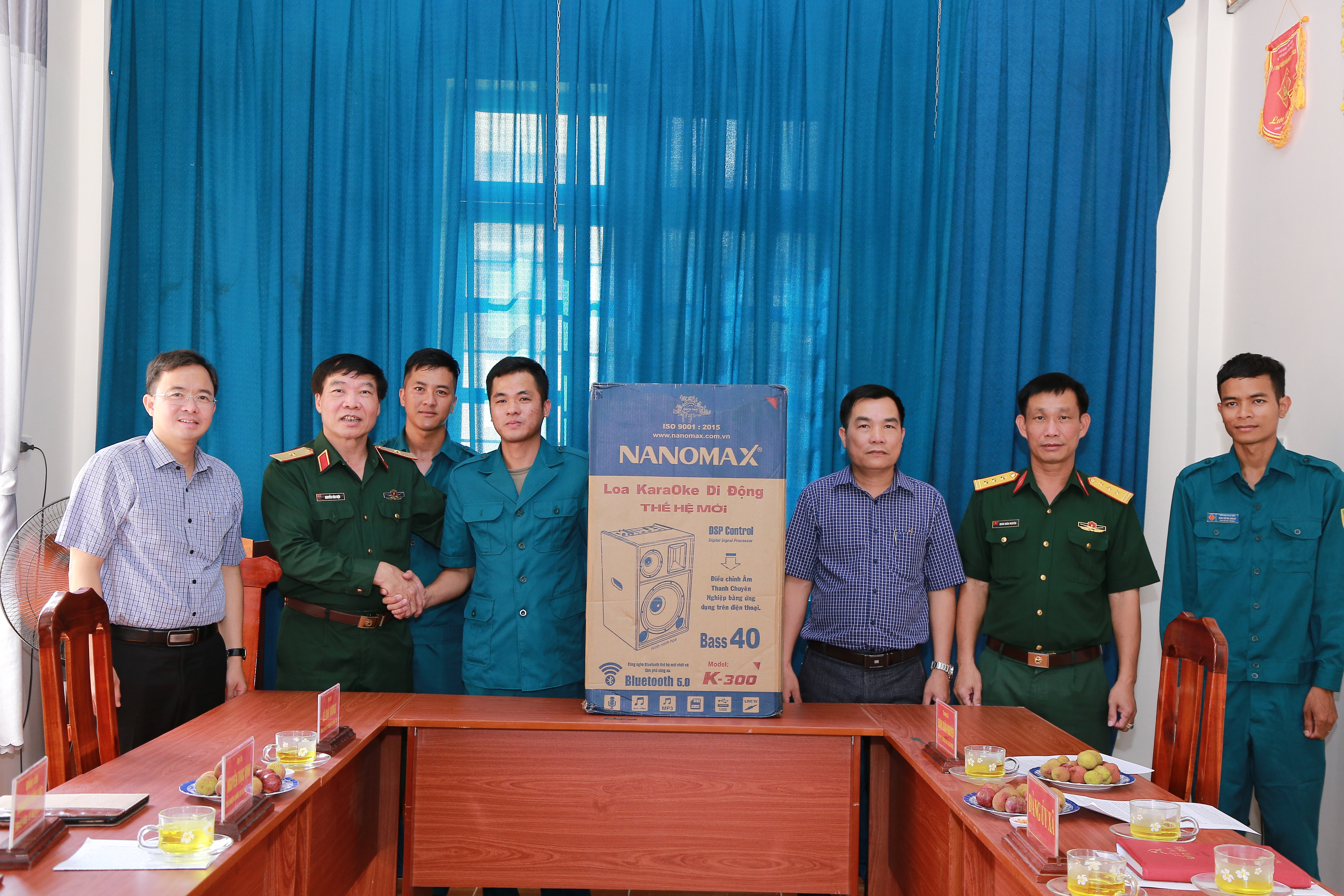 Thiếu tướng Nguyễn Văn Hiệu, Phó Chủ nhiệm Chính trị Quân khu tặng quà, động viên lực lượng dân quân Ban CHQS xã Đạ Tông.