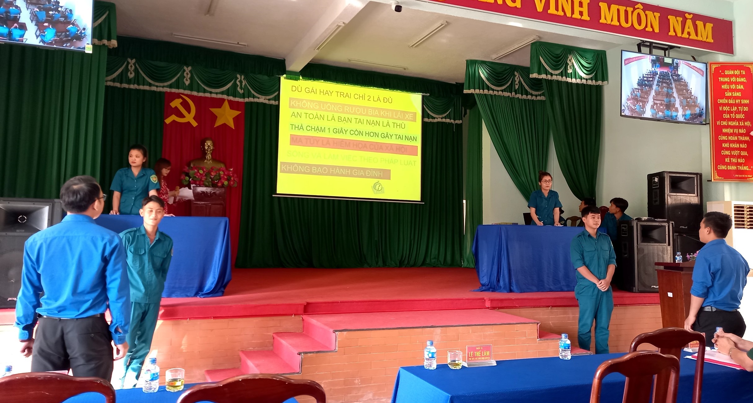 Sau phần tuyên truyền pháp luật, cán bộ, chiến sĩ, đoàn viên thanh niên còn được tham gia trò chơi truyền tin pháp luật; được giải pháp pháp luật liên quan đến Luật Giao thông đường bộ, Luật Nghĩa vụ quân sự và Luật Dân quân tự vệ.