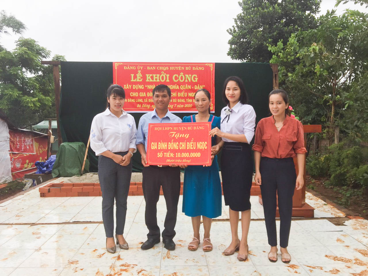 Hội Liên hiệp Phụ nữ huyện Bù Đăng, xã Đặk Nhau tặng tiền ủng hộ gia đình đồng chí Ngọc.