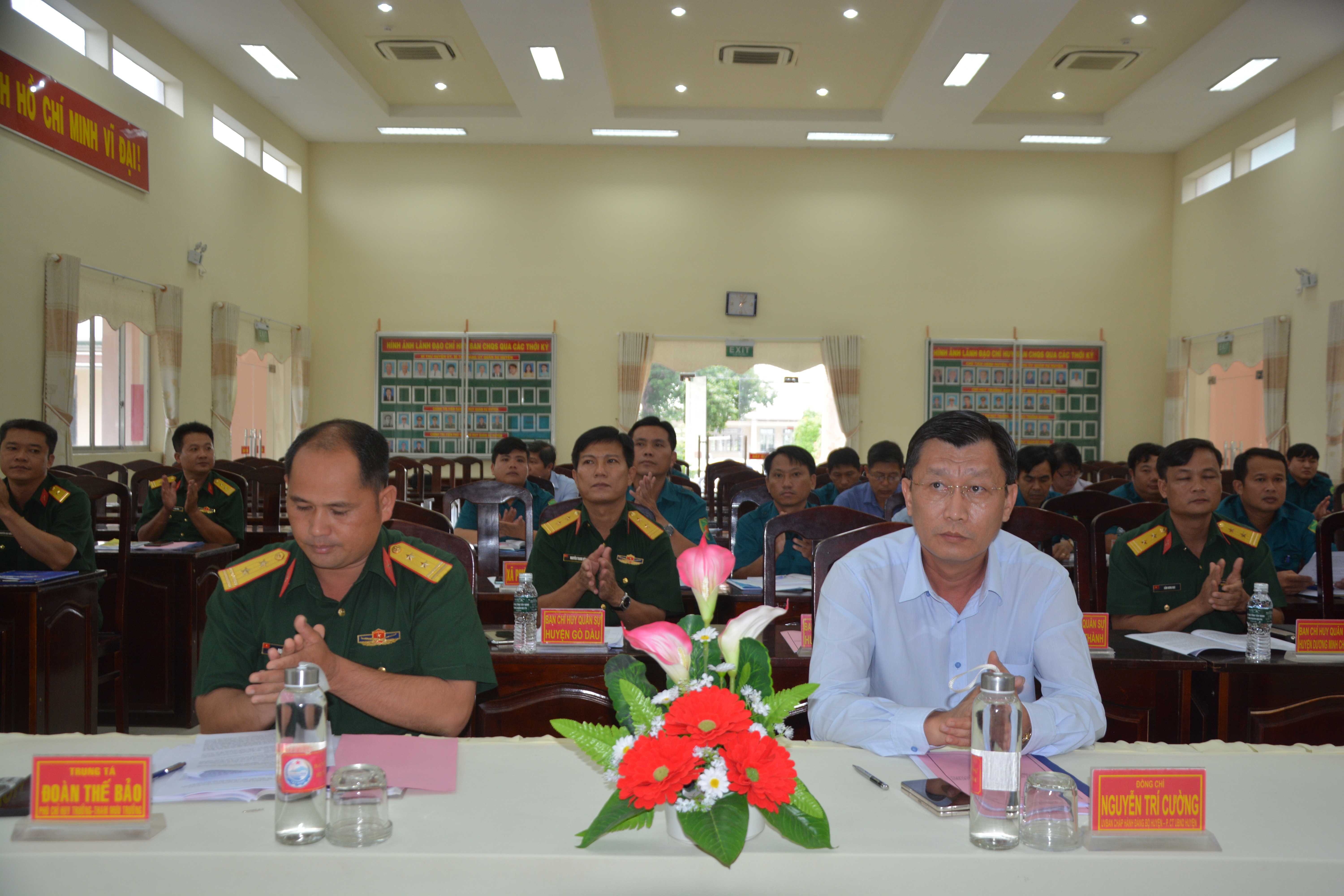 6 tháng đầu năm, Đảng ủy, Ban CHQS huyện lãnh đạo, chỉ đạo, triển khai thực hiện nhiều giải pháp tích cực, đồng bộ nhằm không để xảy ra tình trạng mất an toàn giao thông trong LLVT huyện, quán triệt thực hiện nghị định, chỉ thị, hướng dẫn của Chính phủ, Quân khu, UBND tỉnh, Bộ CHQS tỉnh về bảo đảm trật tự an toàn giao thông.