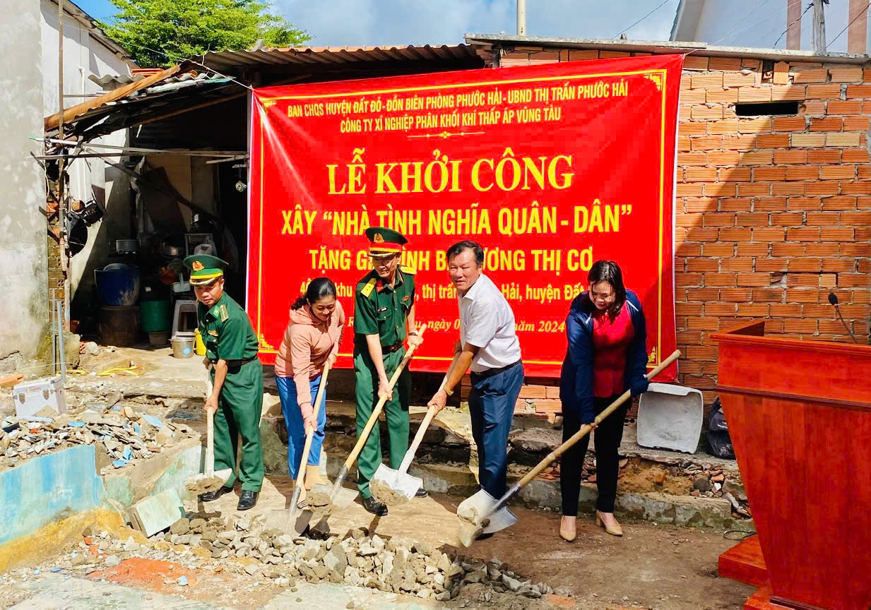 (QK7 Online) - Ngày 6/9, Ban CHQS huyện Đất Đỏ, tỉnh Bà Rịa - Vũng Tàu phối hợp với Đồn Biên phòng Phước Hải và cấp ủy, chính quyền địa phương tổ chức lễ khởi công xây dựng “Nhà tình nghĩa quân - dân” tặng gia đình bà Lương Thị Cơ, ngụ tại khu phố Hải Lạc, thị trấn Phước Hải có hoàn cảnh khó khăn về nhà ở.