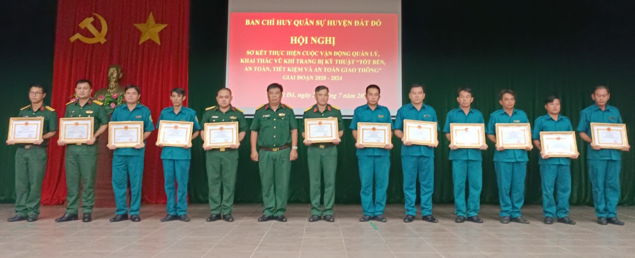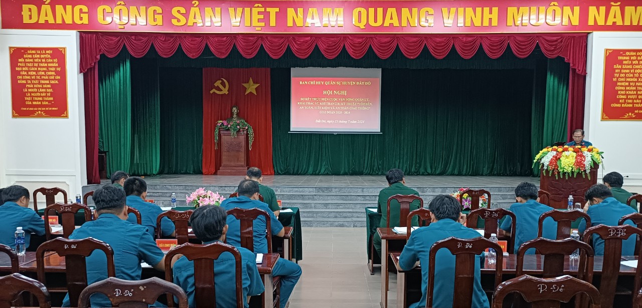 (QK7 Online) - Ngày 23/7, Ban CHQS huyện Đất Đỏ, tỉnh Bà Rịa - Vũng Tàu tổ chức hội nghị sơ kết thực hiện Cuộc vận động “Quản lý, khai thác vũ khí trang bị kỹ thuật tốt, bền, an toàn, tiết kiệm và an toàn giao thông” (CVĐ 50)  giai đoạn 2020 - 2024.