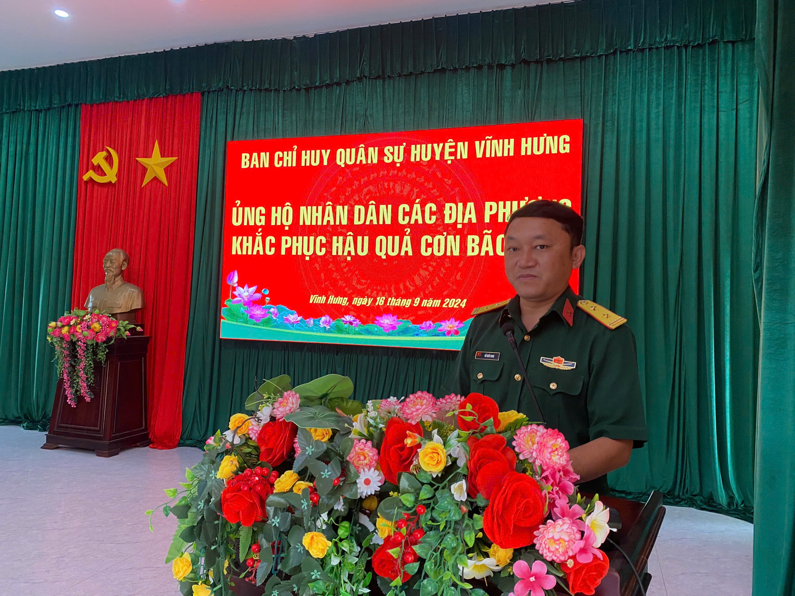 Trung tá Hồ Quốc Danh, Chính trị viên Ban CHQS huyện Vĩnh Hưng phát động ủng hộ.