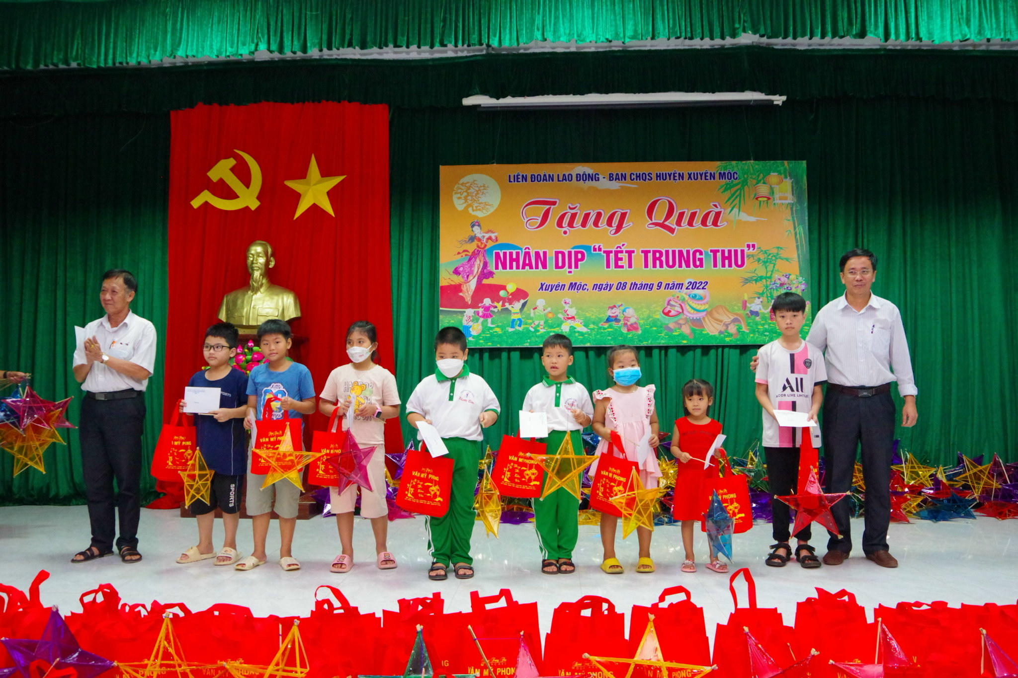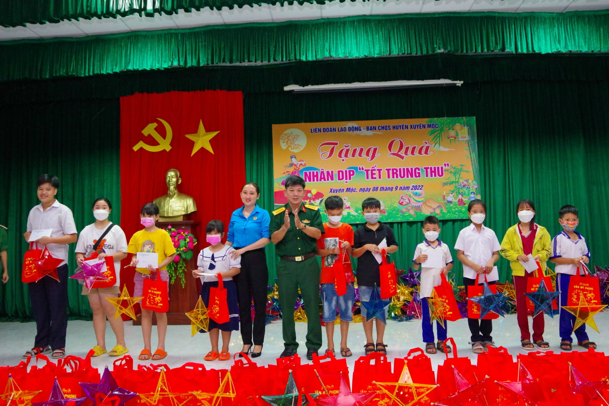 200 suất quà được trao tặng, mỗi suất trị giá 350.000 đồng, gồm: Bánh trung thu, lồng đèn và tiền mặt. Kinh phí quà tặng do Ban CHQS huyện Xuyên Mộc và Liên đoàn lao động huyện vận động các nhà hảo tâm trên địa bàn huyện tài trợ.
