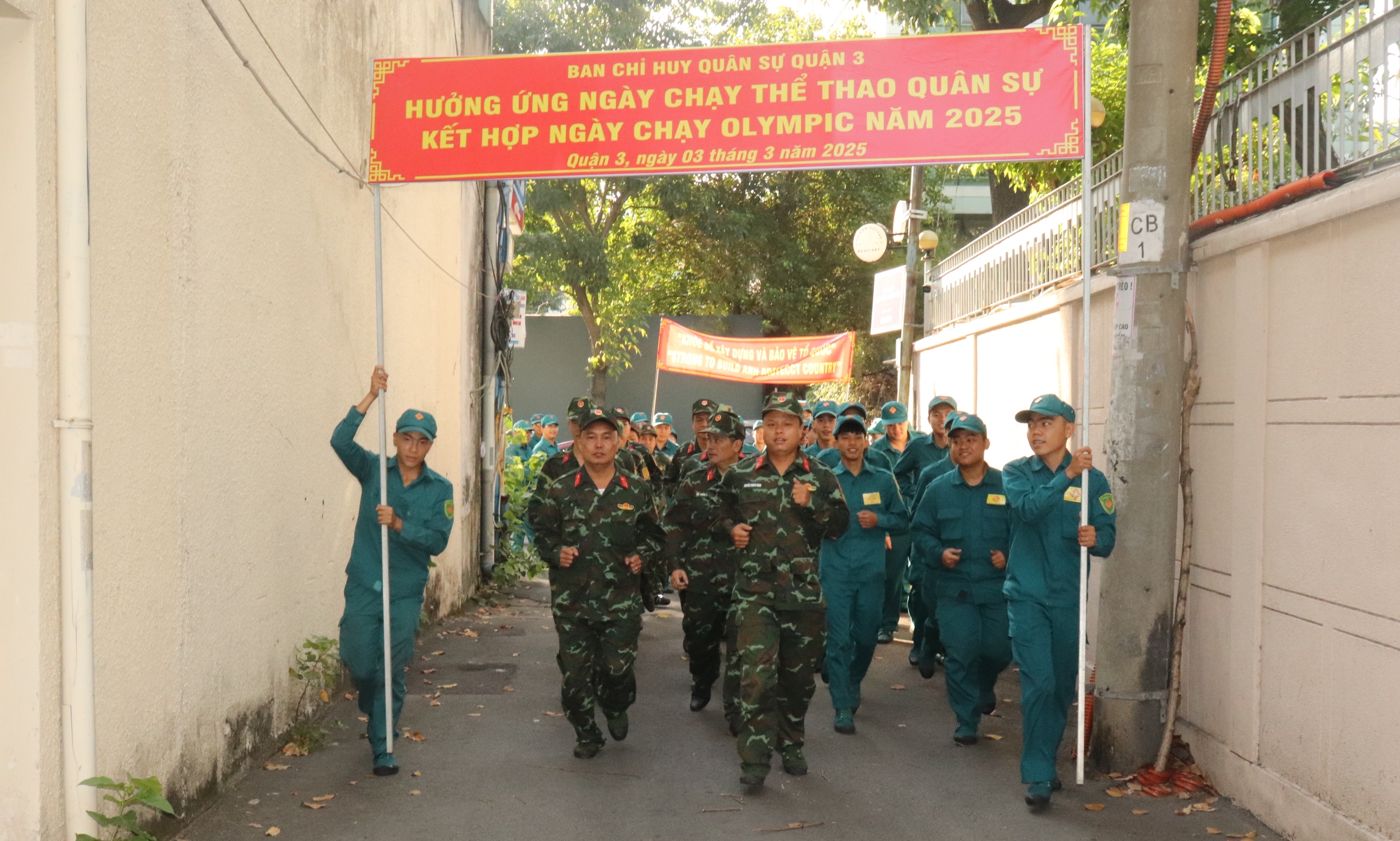 Ngay sau lễ phát động, các cán bộ, chiến sĩ LLVT quận tham gia chạy theo đội hình với quãng đường 3.000 m.