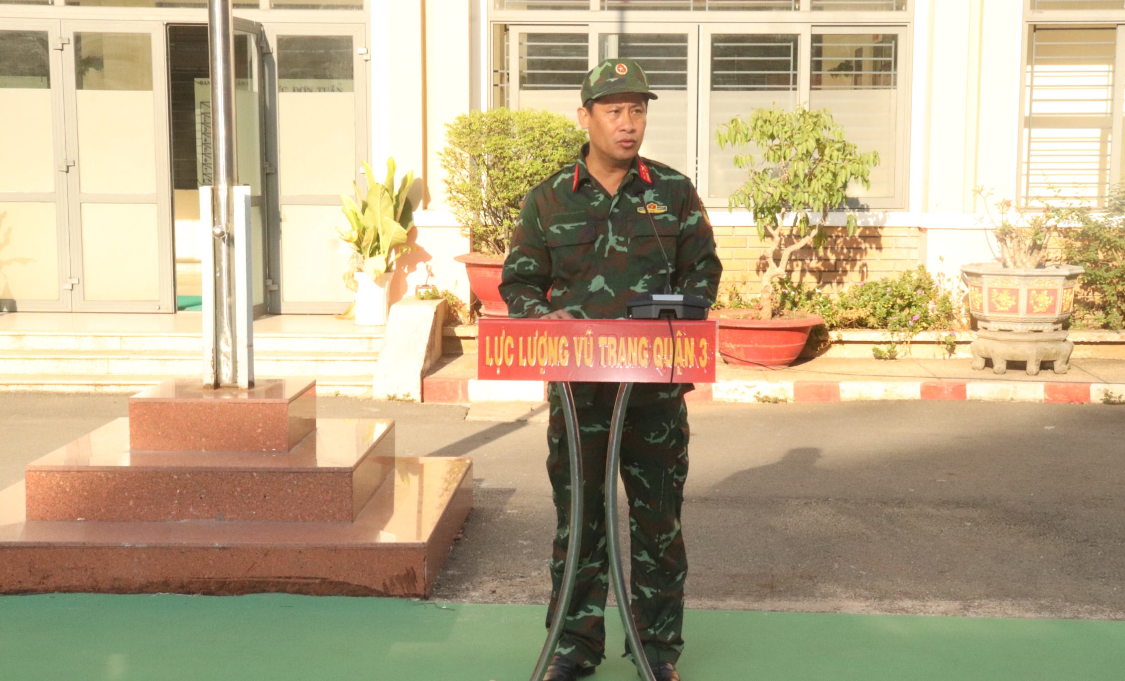 Trung tá Nguyễn Thanh Sang, Phó Chỉ huy trưởng, Tham mưu trưởng Ban CHQS quận phát biểu khai mạc.