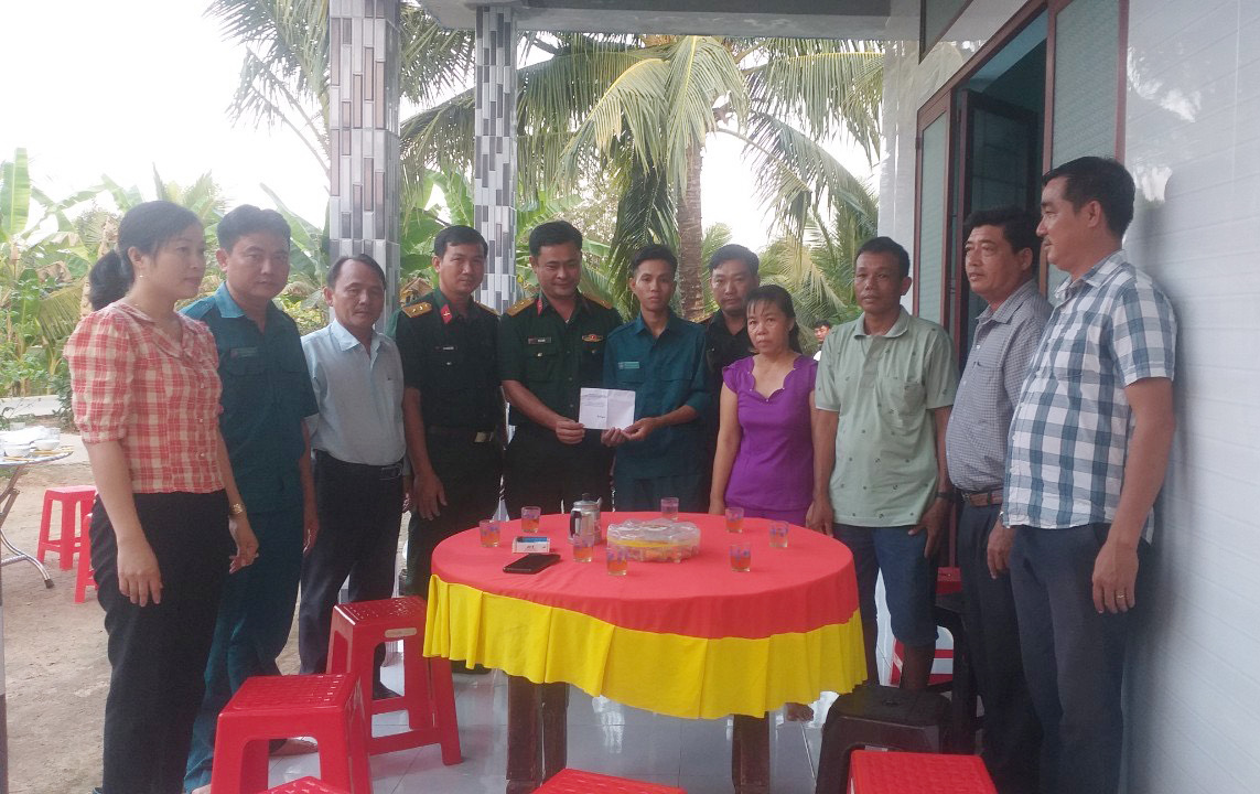 Ban CHQS thị xã Kiến Tường tặng quà động viên gia đình đảng viên nhập ngũ năm 2024.