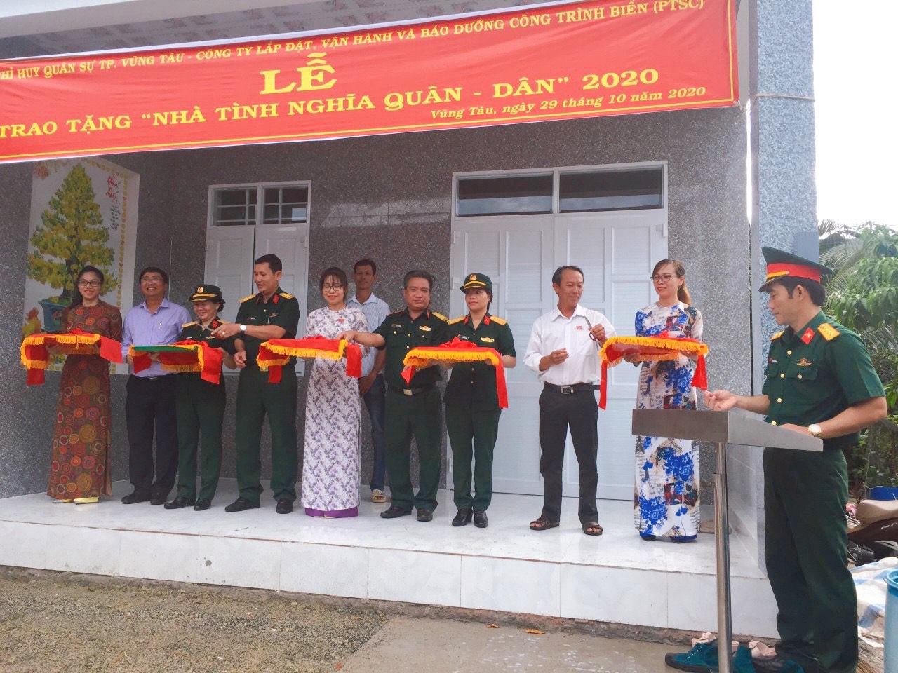 (QK7 Online) - Chiều 29/10, Ban CHQS TP.Vũng Tàu phối hợp với Công ty CP Dịch vụ lắp đặt vận hành và bảo dưỡng công trình dầu khí biển PTSC tổ chức lễ khánh thành và bàn giao nhà “Tình nghĩa quân - dân” cho gia đình ông Thái Bình Dương (thôn 7, xã Long Sơn, TP.Vũng Tàu).