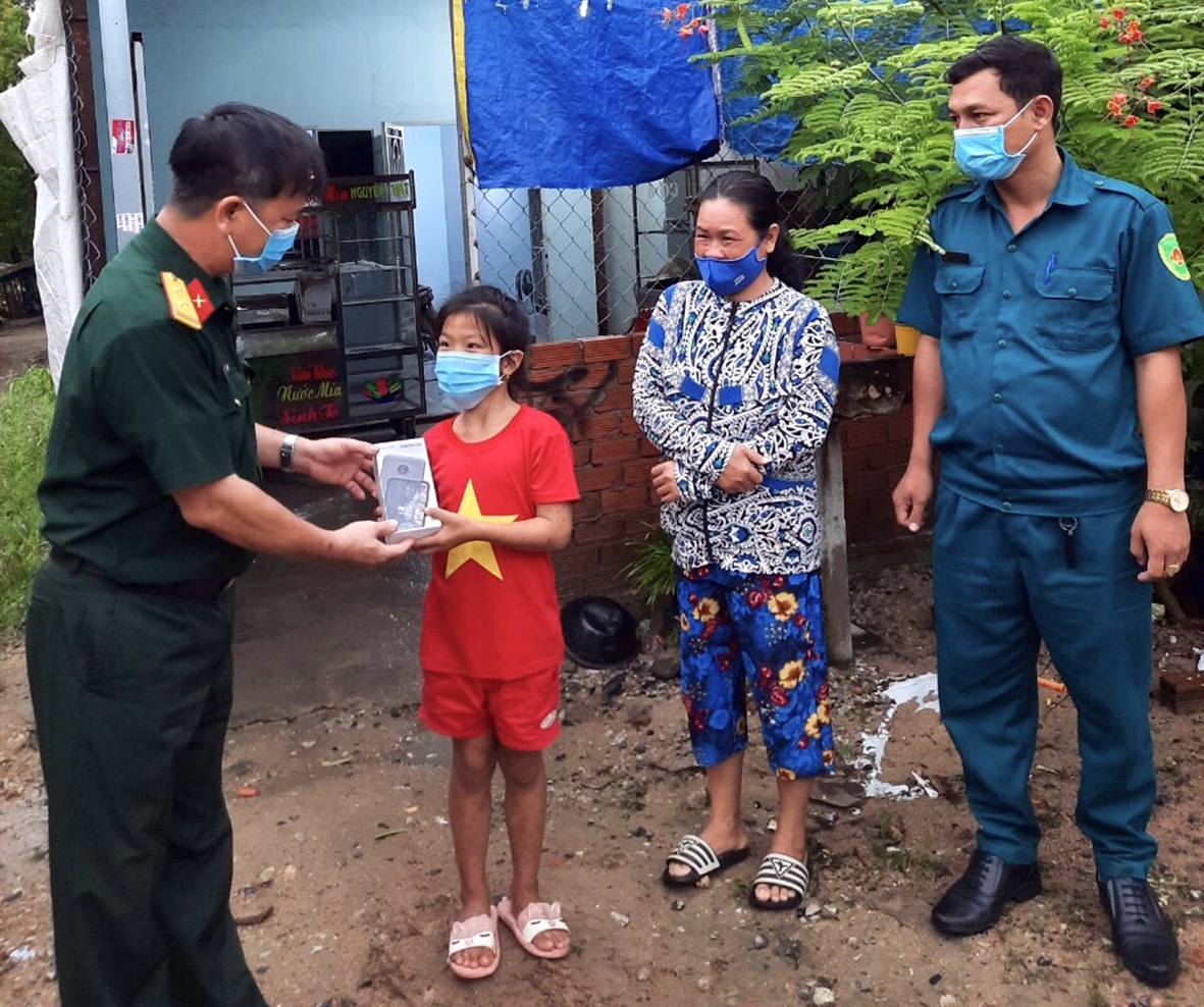 Trung tá Vũ Văn Hệ, Chính trị viên phó Ban CHQS TX.Phú Mỹ, cho biết, ngoài hỗ trợ 6 học sinh nói trên, Đảng ủy, Ban CHQS TX. Phú Mỹ còn tặng điện thoại thông minh, sách vở cho em Trần Ngọc Hân (lớp 2, Trường TH Nguyễn Thị Định, phường Tân Phước) và em Võ Thành Tâm (lớp 5A4, Trường TH Chu Hải, xã Tân Hải). 2 học sinh nghèo trên được hỗ trợ theo chương trình “Mỗi chi bộ quân sự hỗ trợ 1 hộ nghèo vươn lên thoát nghèo bền vững”.