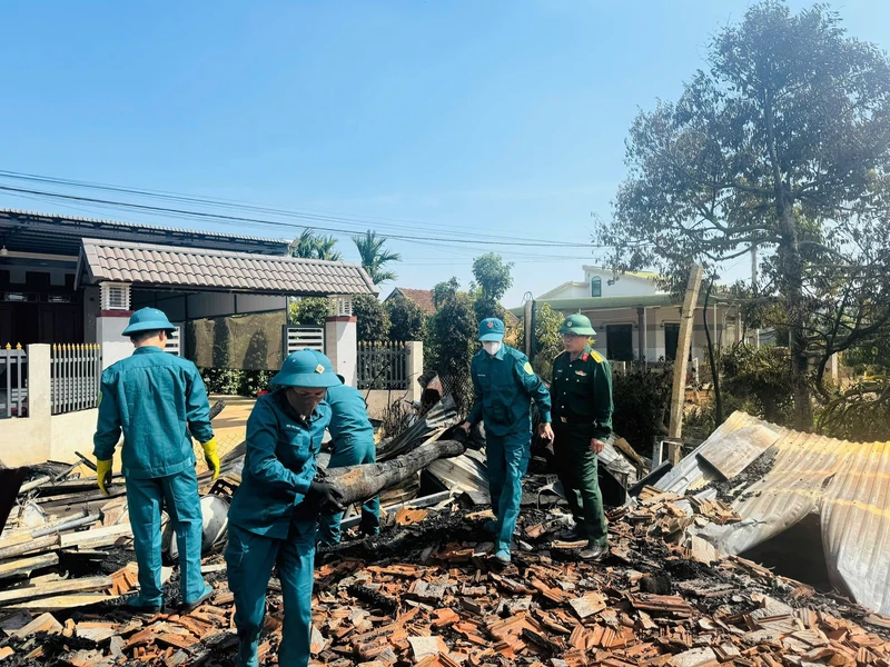Ban CHQS xã Đắk Sắk hỗ trợ gia đình bị hỏa hoạn vượt qua khó khăn