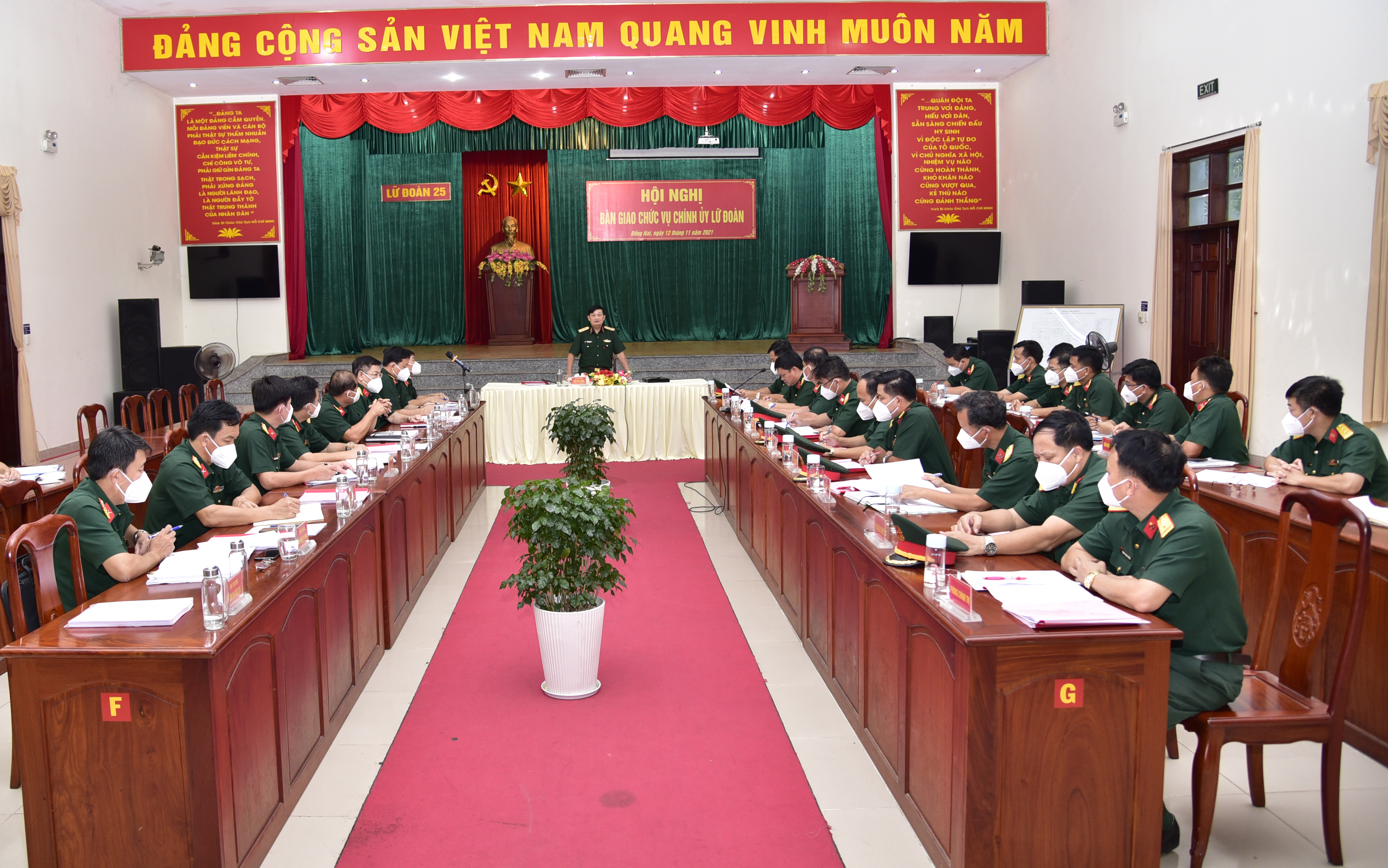 (QK7 Online) - Chiều 12 tháng 11, Lữ đoàn 25 tổ chức hội nghị bàn giao chức vụ Chính ủy Lữ đoàn. Trung tướng Trần Hoài Trung, Bí thư Đảng ủy, Chính ủy Quân khu dự và chỉ đạo công tác bàn giao.