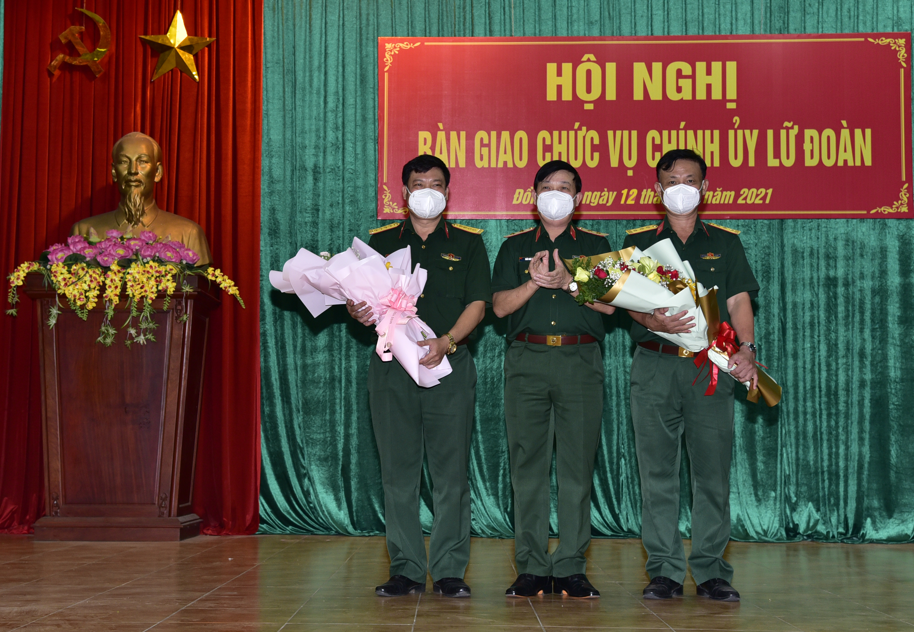 Đồng chí Chính ủy Quân khu tặng hoa chúc mừng các đồng chí nhận nhiệm vụ mới