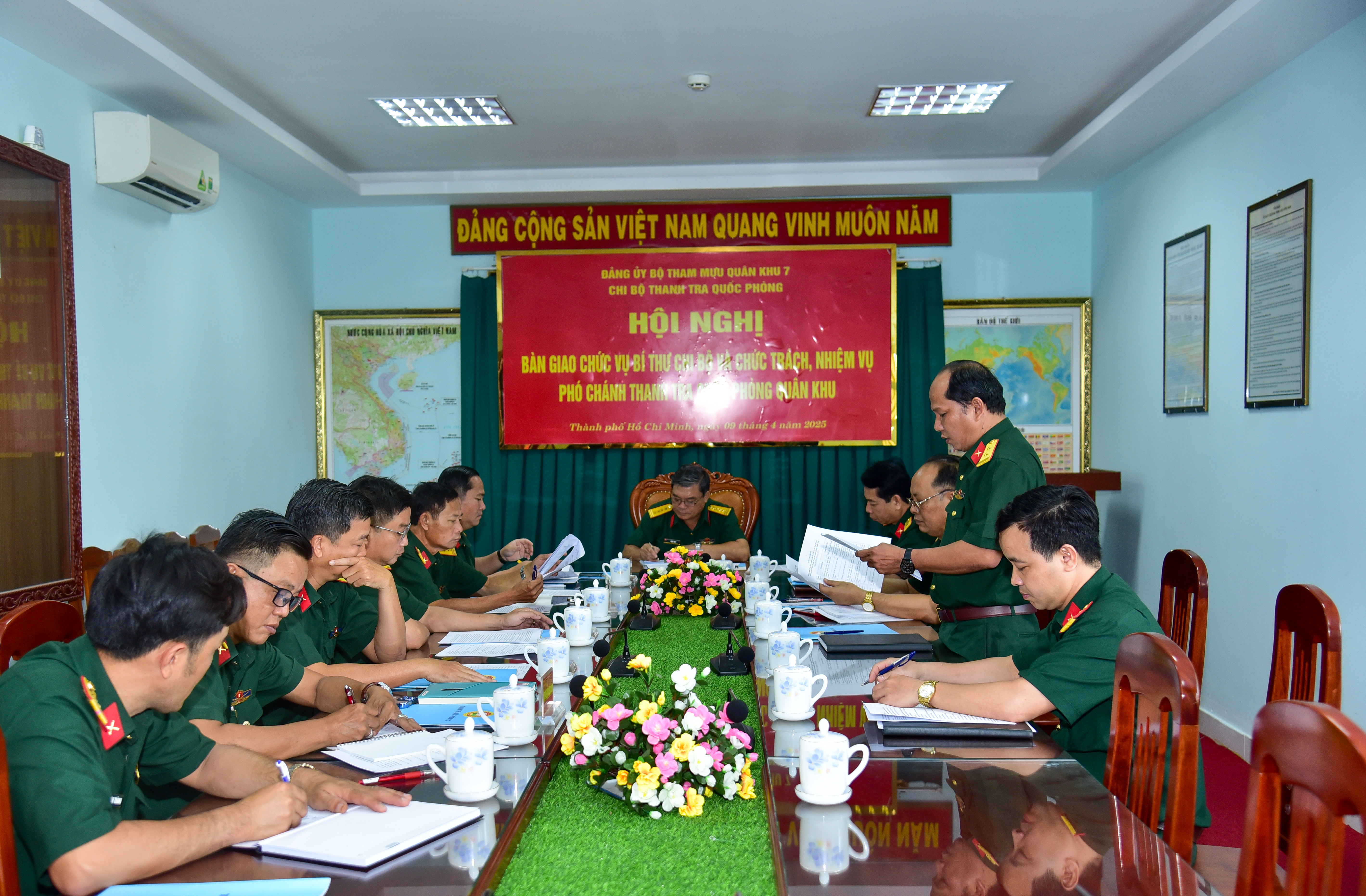 (QK7 Online) – Chiều ngày 9/4, Thanh tra Quốc phòng Quân khu 7 tổ chức Hội nghị bàn giao chức vụ Bí thư Chi bộ và chức trách, nhiệm vụ Phó Chánh Thanh tra Quốc phòng Quân khu 7. Đại tá Phạm Phú Ý, Bí thư Đảng ủy Bộ Tham mưu, Phó Tham mưu trưởng Quân khu 7 chủ trì hội nghị.