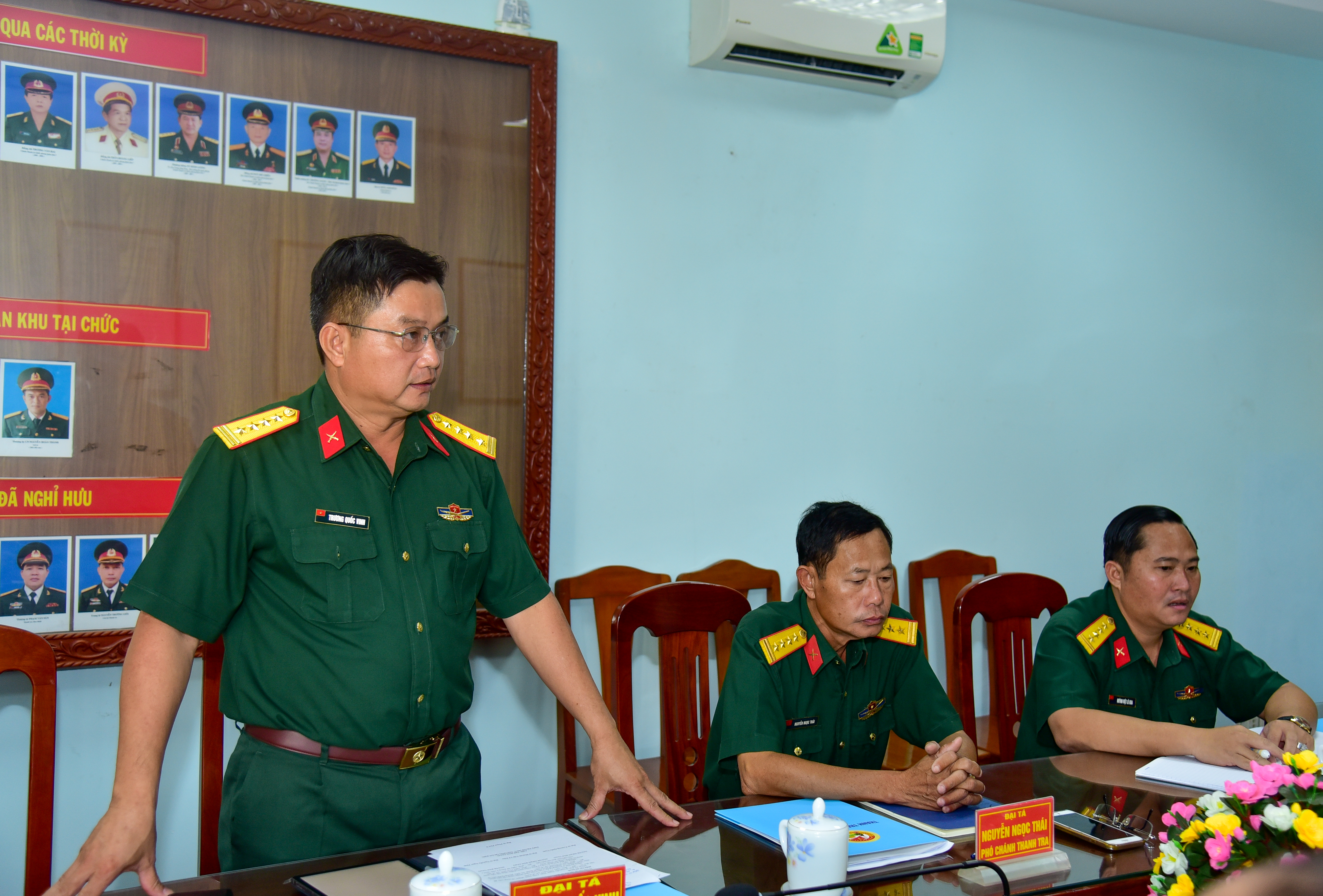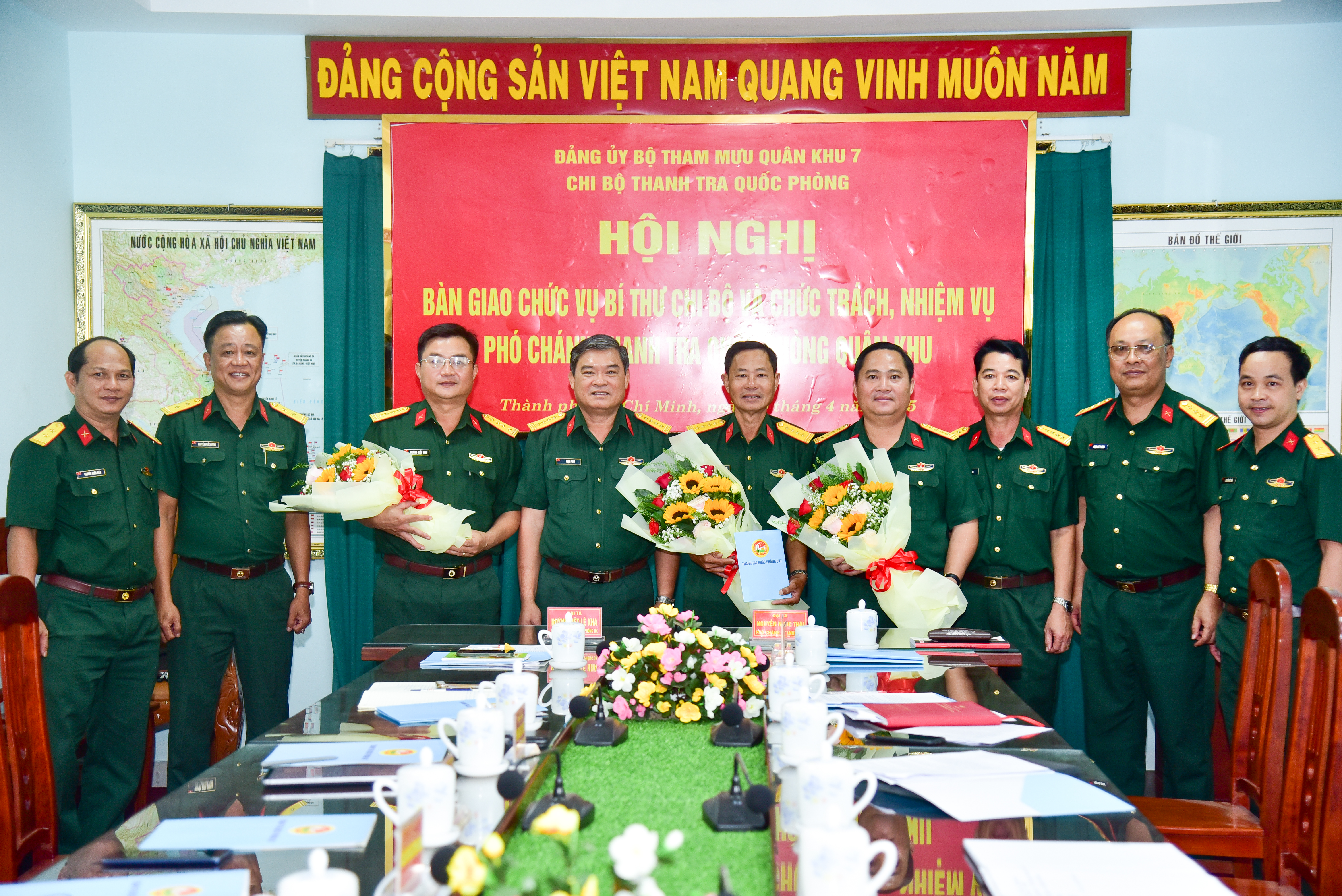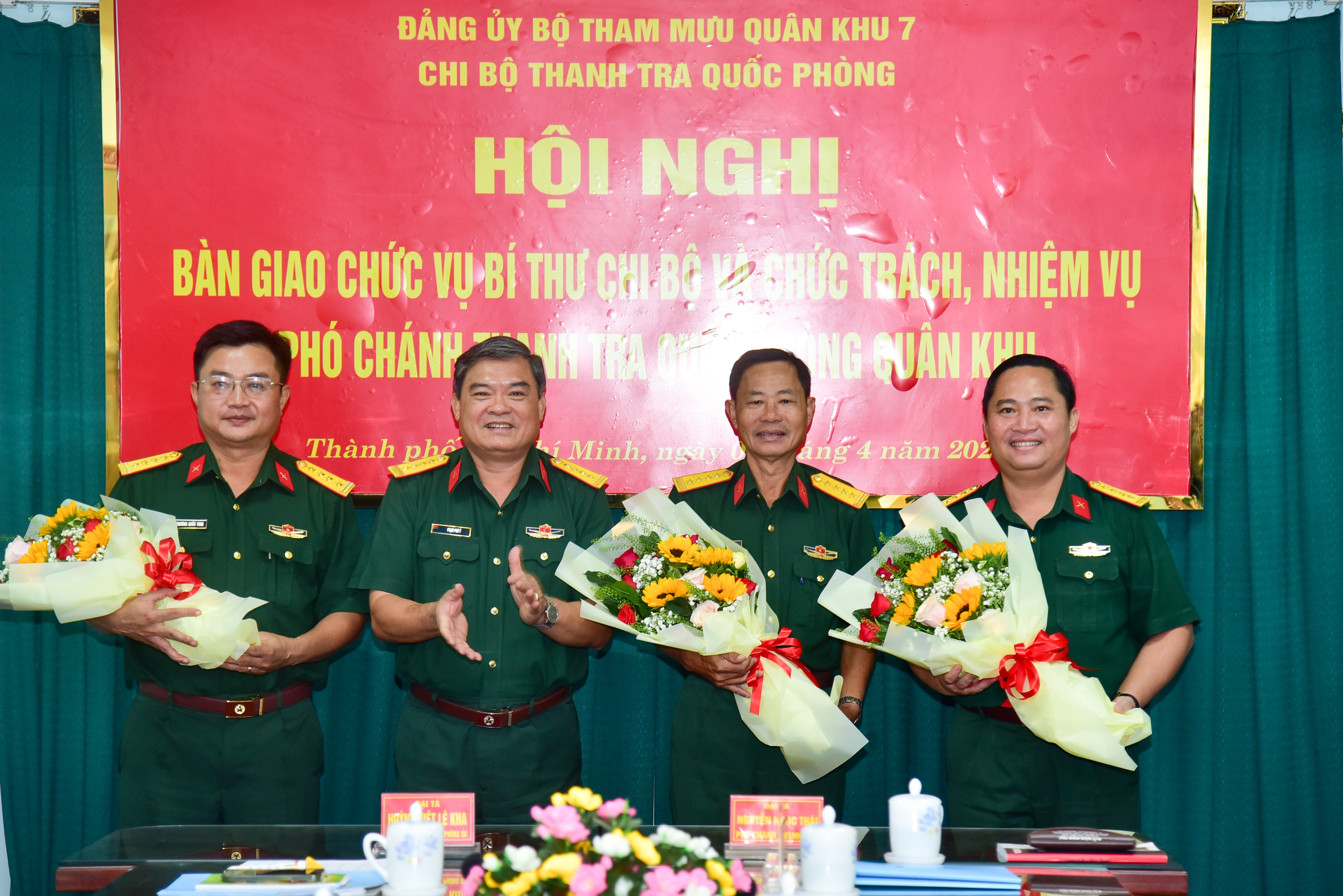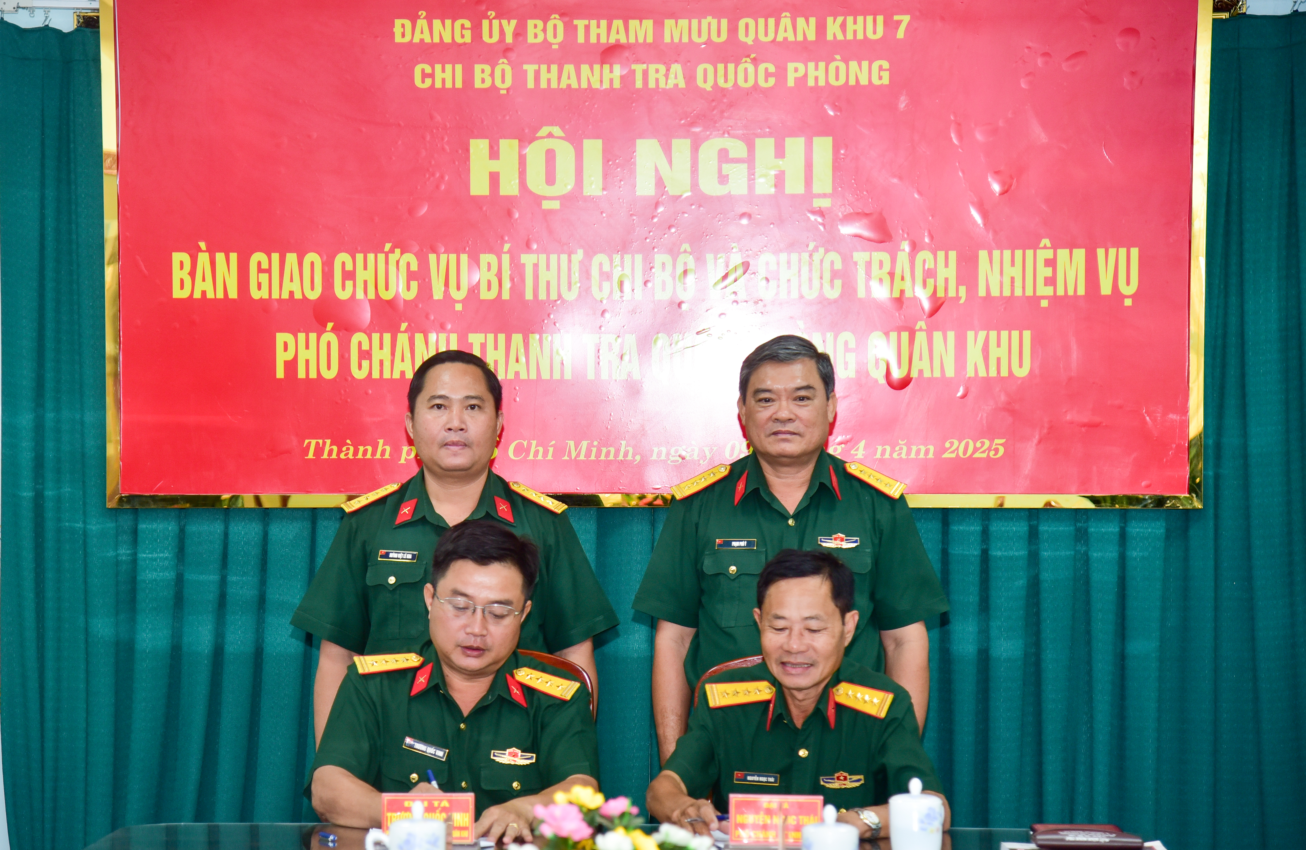 Theo Quyết định của Bộ Quốc phòng, Đại tá Nguyễn Ngọc Thái, Bí thư Chi bộ, Phó Chánh Thanh tra Quốc phòng Quân khu 7 nghỉ công tác, nghỉ chờ hưu theo chế độ, bàn giao chức vụ Bí thư Chi bộ cho Đại tá Huỳnh Việt Lê Kha, Chánh Thanh tra Quốc phòng Quân khu 7; bàn giao nhiệm vụ Phó Chánh Thanh tra Quốc phòng Quân khu 7 cho Đại tá Trương Quốc vinh vừa được bổ nhiệm Phó Chánh Thanh tra. Tại hội nghị, các đồng chí đã tiến hành bàn giao chặt chẽ, nghiêm túc các nội dung theo đúng quy định.