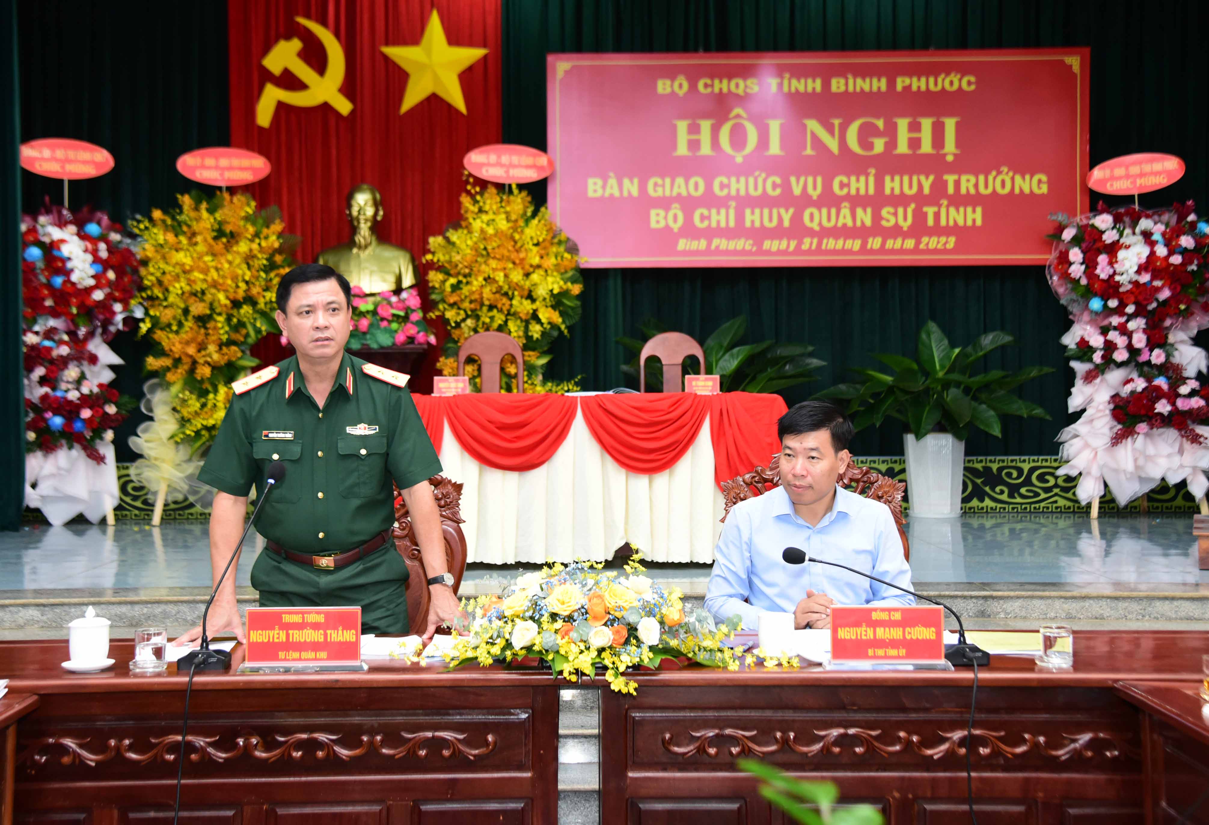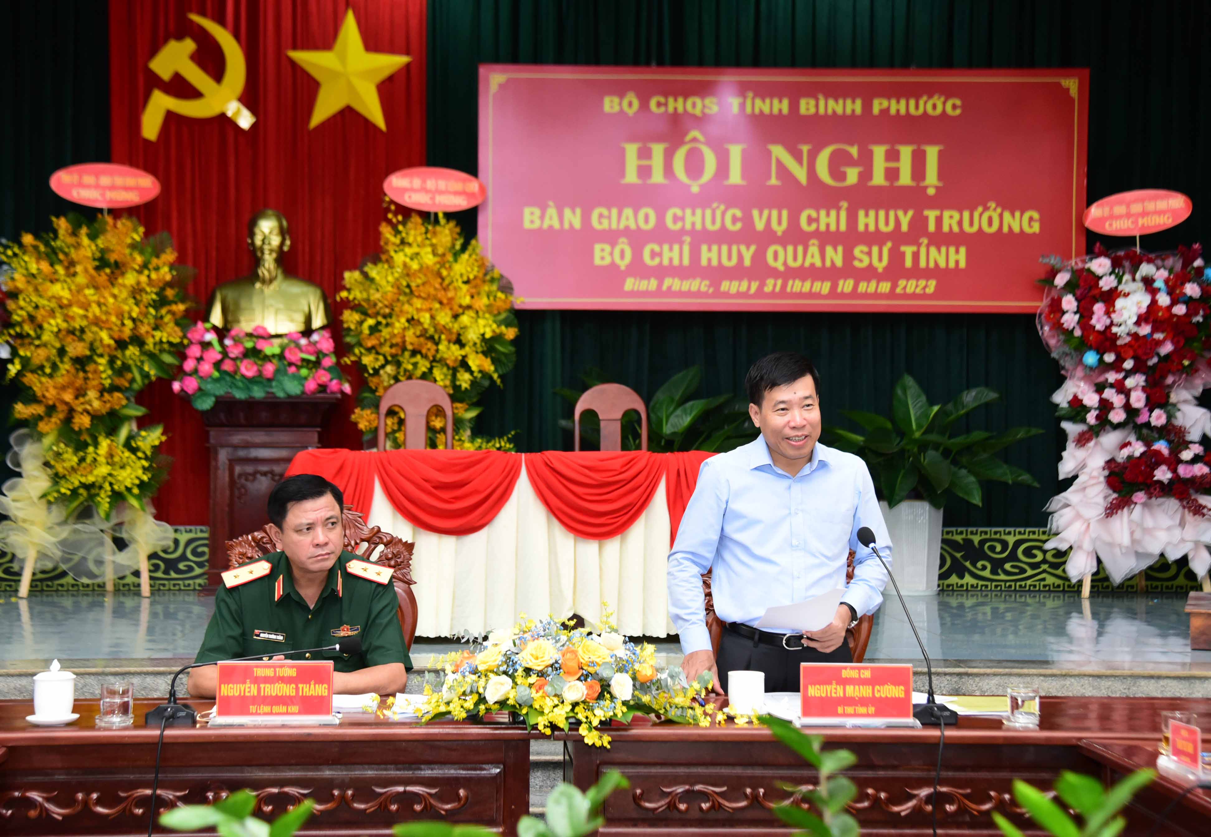 Phát biểu tại buổi bàn giao, đồng chí Nguyễn Mạnh Cường, Bí thư Tỉnh ủy Bình Phước đánh giá cao phẩm chất, năng lực của Đại tá Nguyễn Quốc Bình trên cương vị Chỉ huy trưởng Bộ Chỉ huy Quân sự tỉnh đã cùng tập thể Ban Thường vụ Đảng ủy Quân sự tỉnh tham mưu cho Tỉnh ủy, Hội đồng Nhân dân, Ủy ban Nhân dân tỉnh lãnh đạo, chỉ đạo, tổ chức thực hiện có hiệu quả nhiệm vụ quốc phòng, quân sự địa phương, xây dựng nền quốc phòng toàn dân gắn với thế trận an ninh Nhân dân, xây dựng lực lượng vũ trang tỉnh ngày càng vững mạnh về mọi mặt. Đặc biệt là trong nhiệm vụ huấn luyện, sẵn sàng chiến đấu; phòng chống dịch bệnh, khắc phục hậu quả thiên tai, tìm kiếm cứu hộ, cứu nạn.