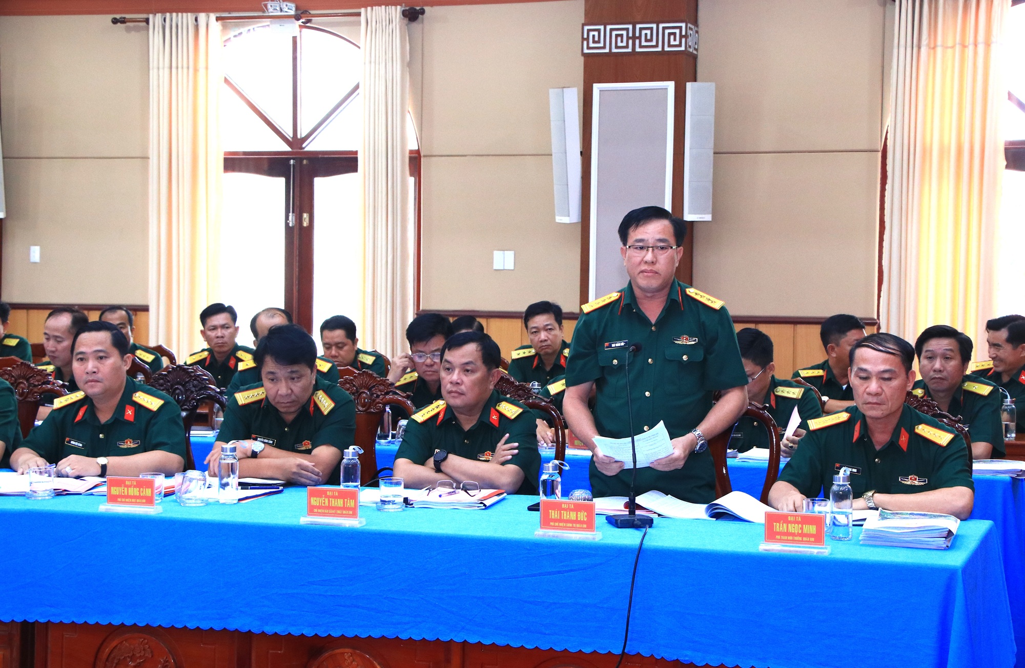 Thủ trưởng các cơ quan Quân khu phát biểu tại hội nghị.