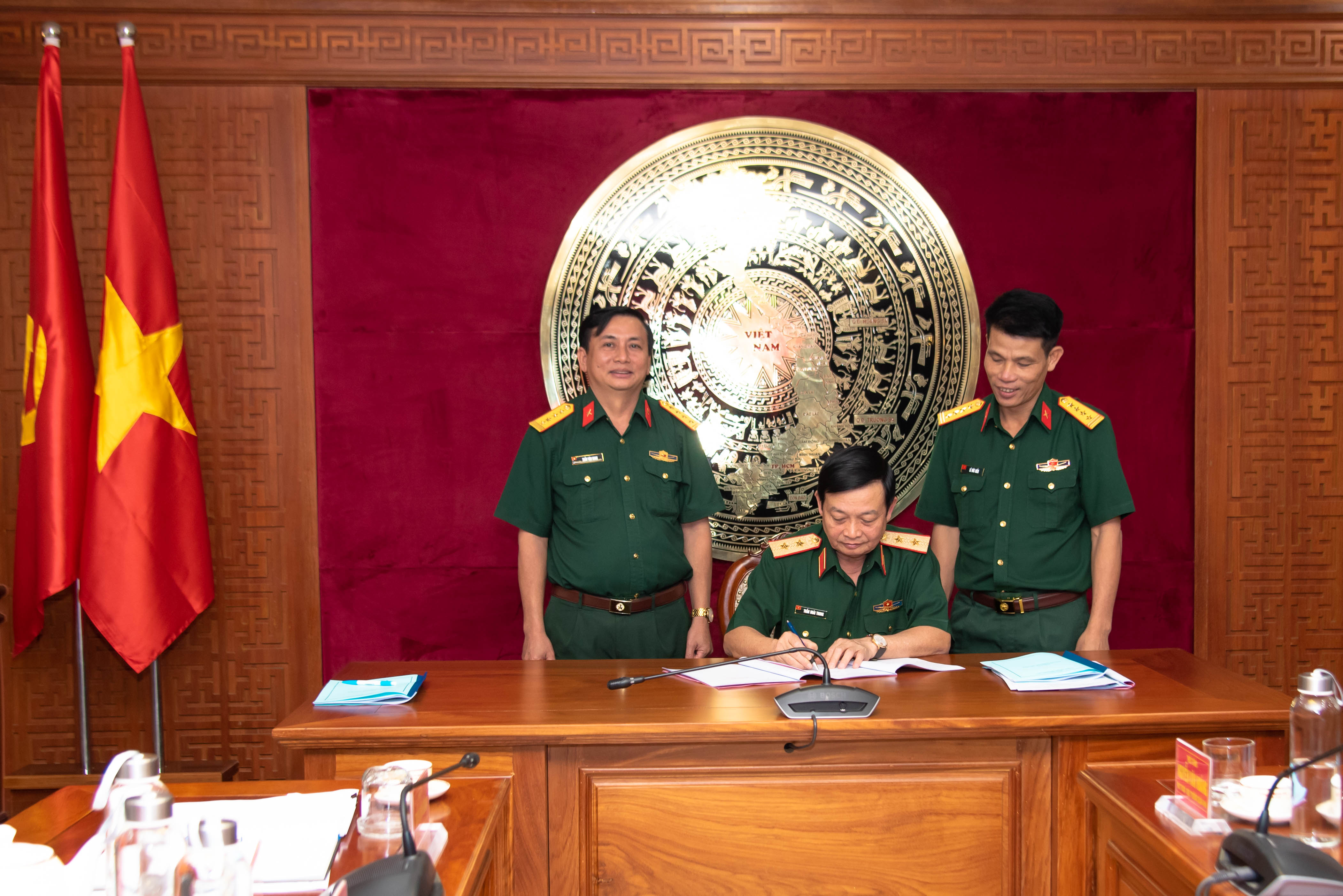 Đồng chí Chính ủy Quân khu ký xác nhận Biên bản bàn giao.