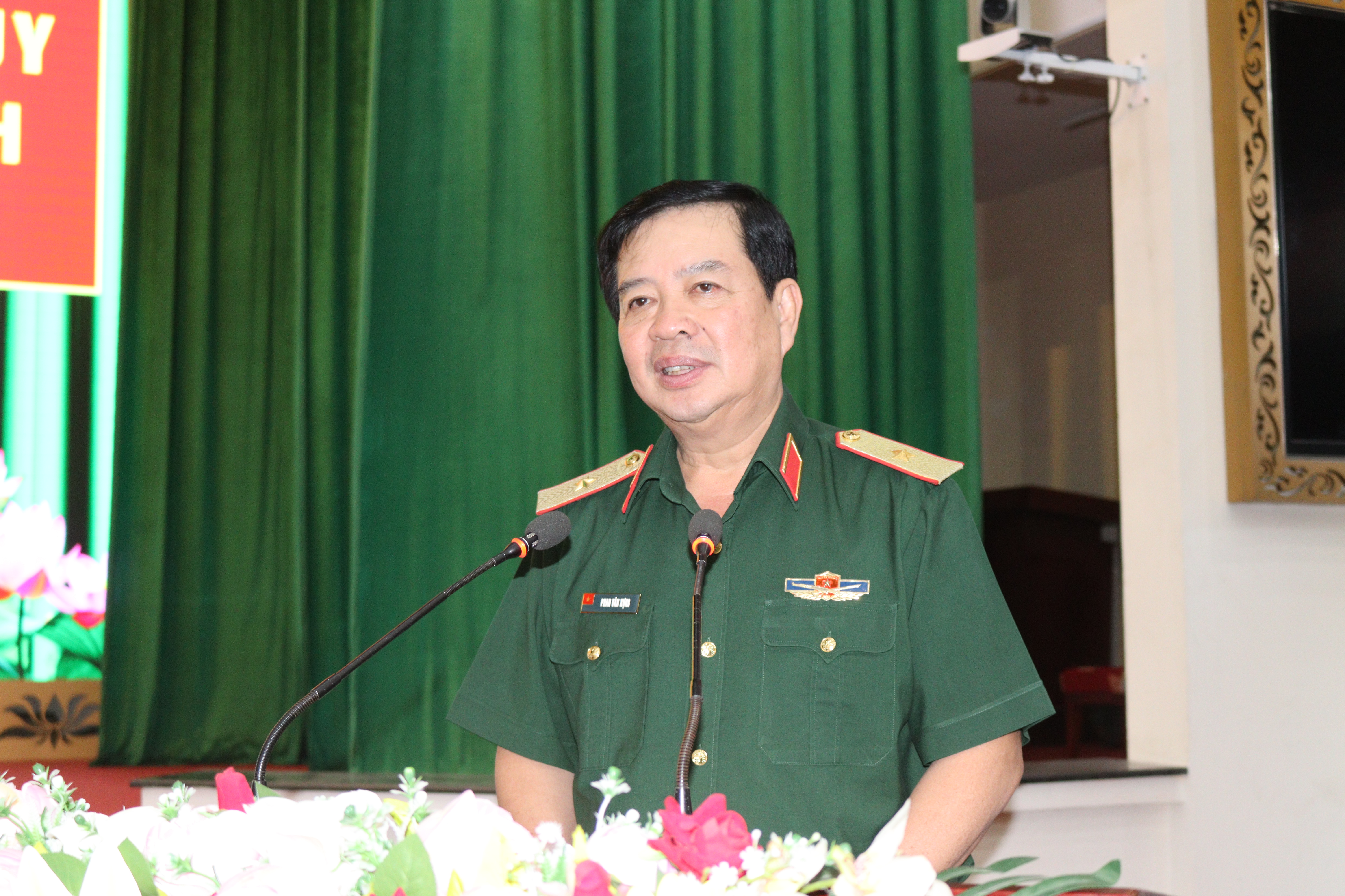 Thiếu tướng Phan Văn Xựng, nguyên Chính uỷ Bộ Tư lệnh TPHCM phát biểu bàn giao chức vụ Chính uỷ Bộ Tư lệnh TPHCM.