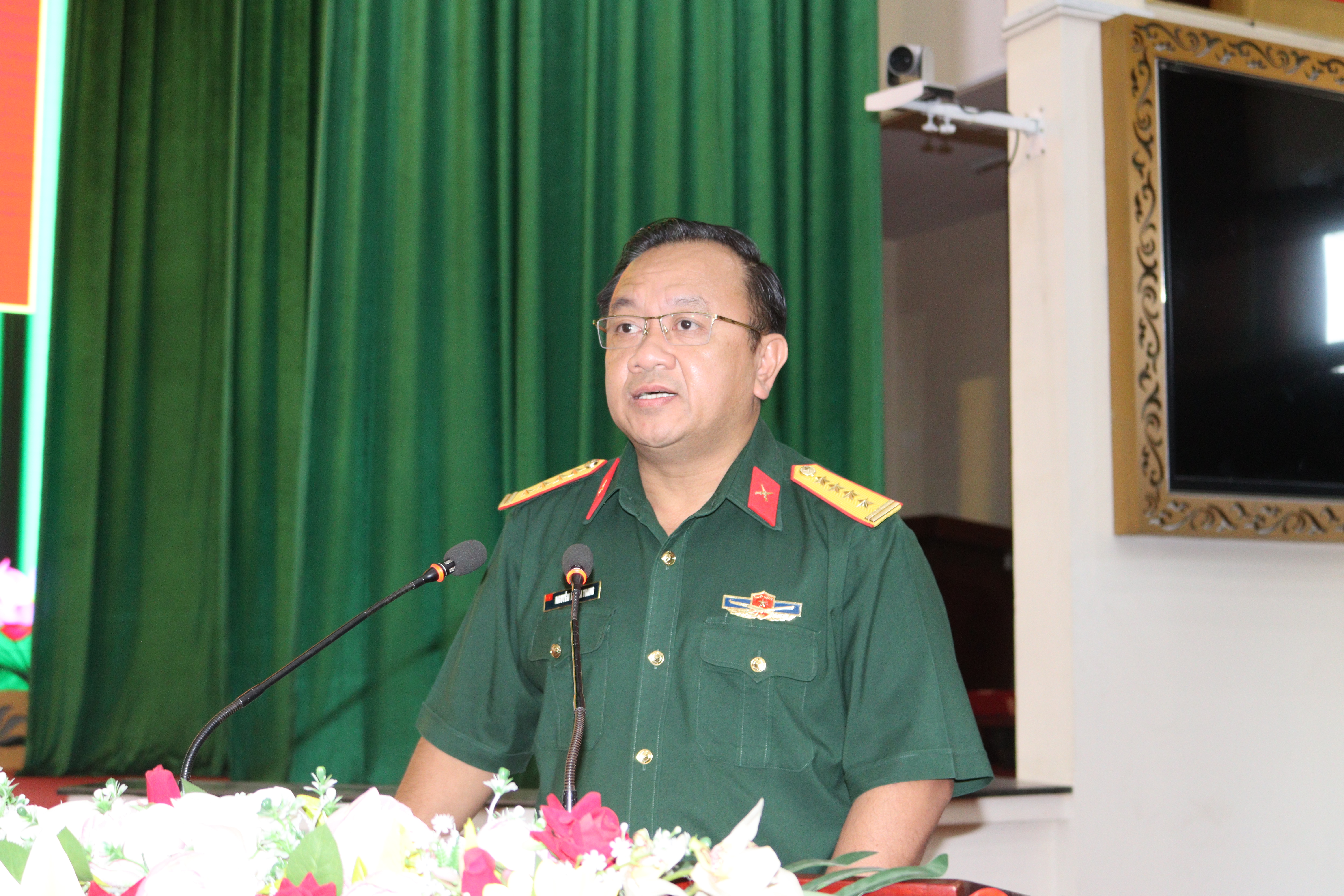 Trung tướng Nguyễn Trường Thắng, Tư lệnh Quân khu phát biểu tại hội nghị.