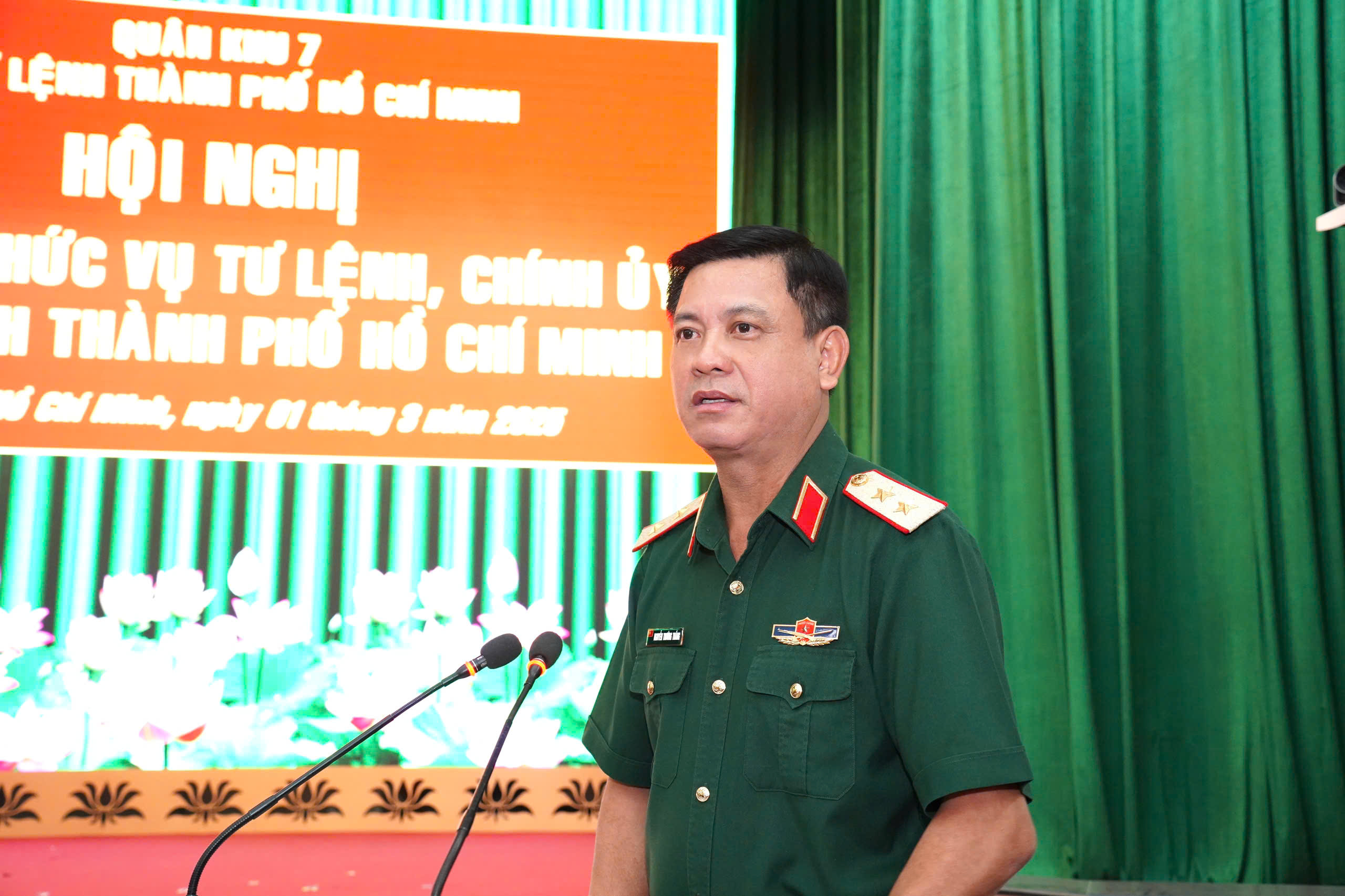 Trung tướng Nguyễn Văn Nam, nguyên Tư lệnh Bộ Tư lệnh TPHCM phát biểu bàn giao chức vụ Tư lệnh Bộ Tư lệnh TPHCM.