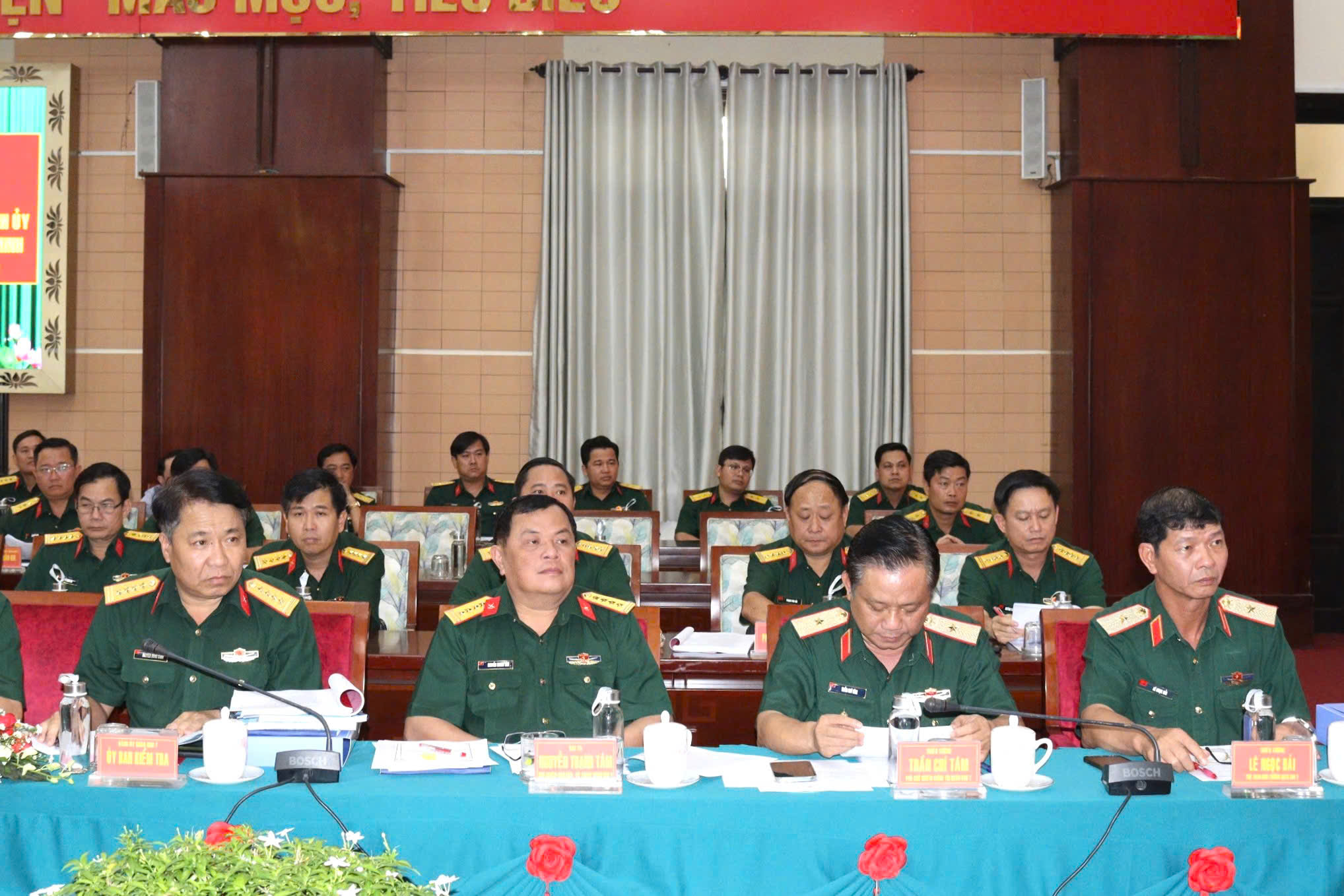 Trung tướng Nguyễn Trường Thắng, Tư lệnh Quân khu; Thiếu tướng Trần Vinh Ngọc, Chính uỷ Quân khu và đồng chí Nguyễn Văn Nên, Bí thư Thành uỷ đồng chủ trì hội nghị.