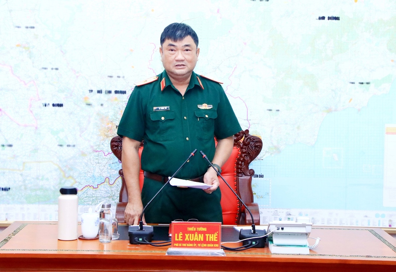 Thiếu tướng Lê Xuân Thế, Tư lệnh Quân khu chủ trì hội nghị.