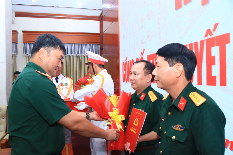 Thiếu tướng Lê Xuân Thế, Tư lệnh Quân khu trao quyết định cho các đồng chí cán bộ.