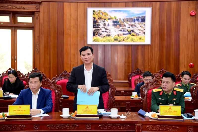 Đồng chí Hồ Văn Mười, Chủ tịch UBND tỉnh phát biểu tại buổi làm việc.