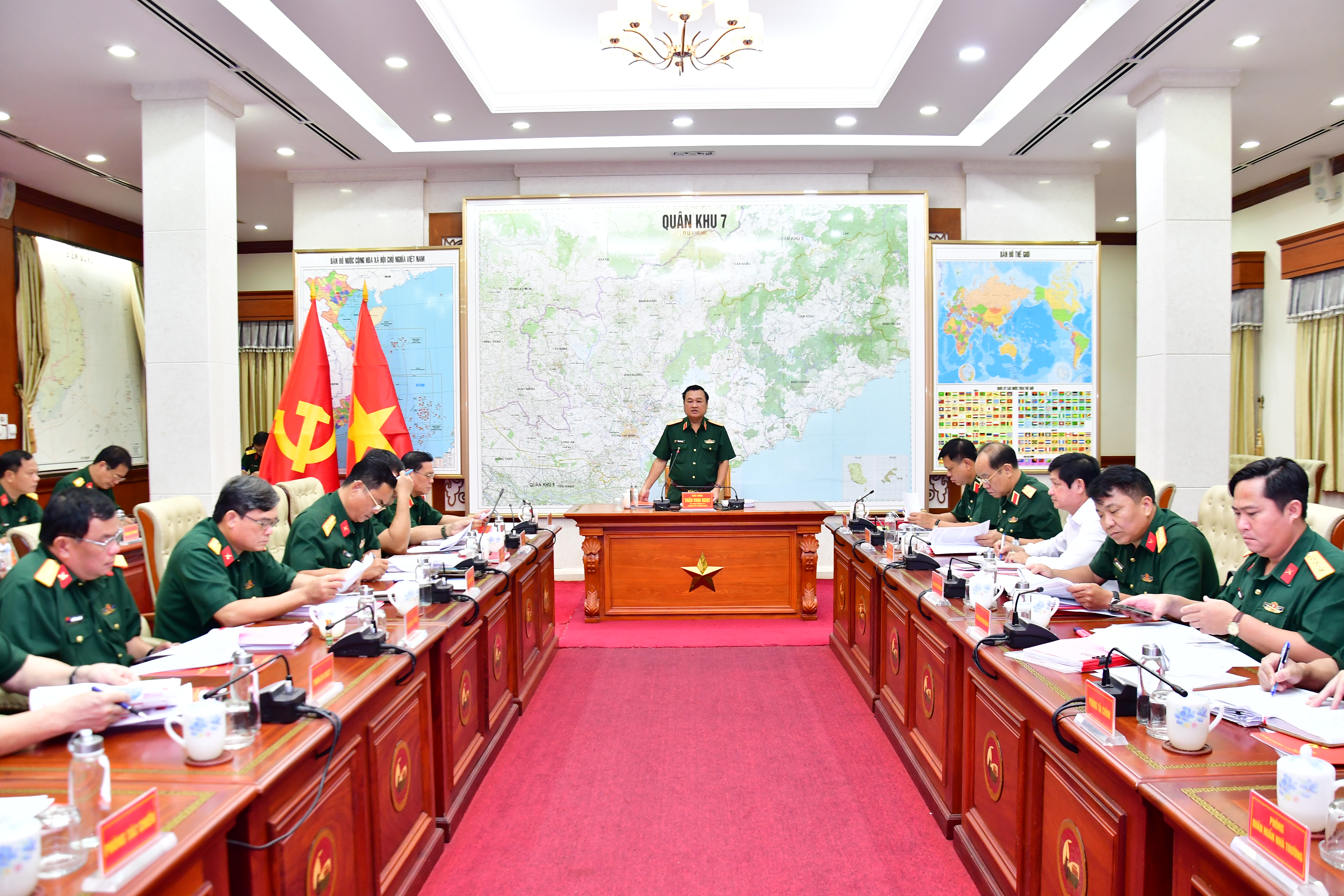 Thiếu tướng Trần Vinh Ngọc, Bí thư Đảng ủy, Chính ủy Quân khu chủ trì hội nghị.