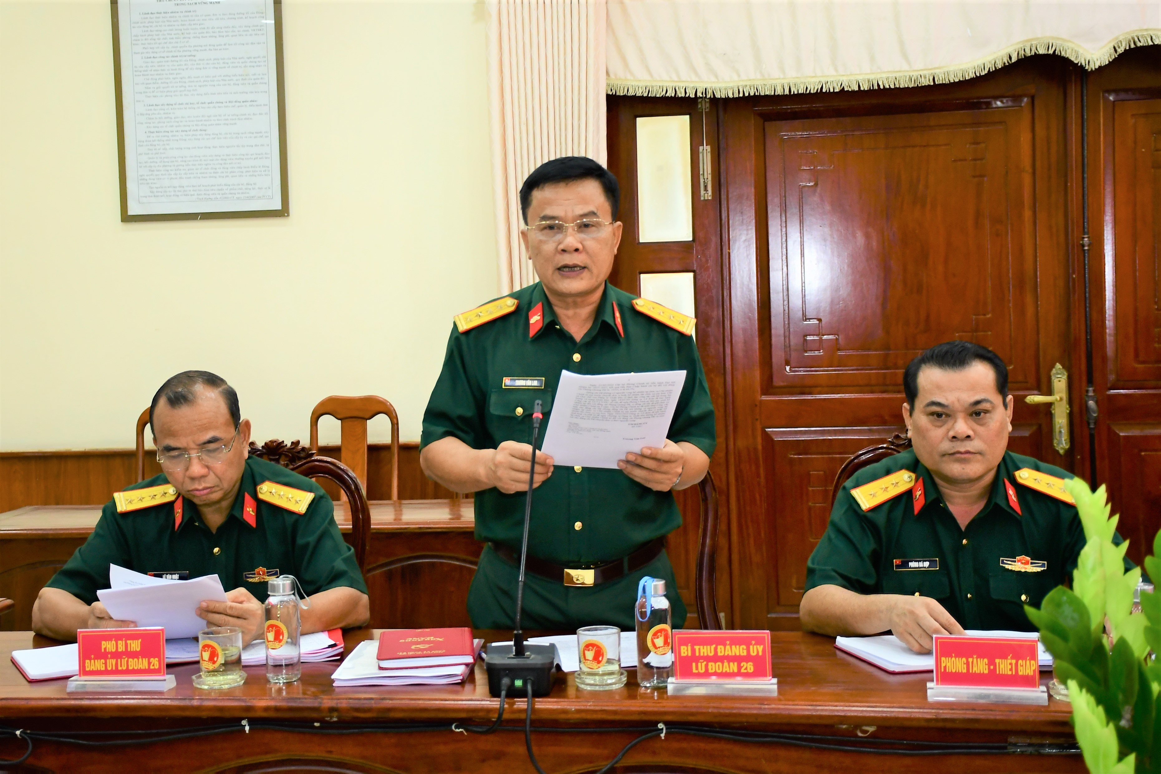 Đại tá Trương Văn Lan, Bí thư Đảng ủy, Chính ủy Lữ đoàn 26 báo cáo công tác chuẩn bị Đại hội Đảng bộ Lữ đoàn nhiệm kỳ 2025 - 2030.