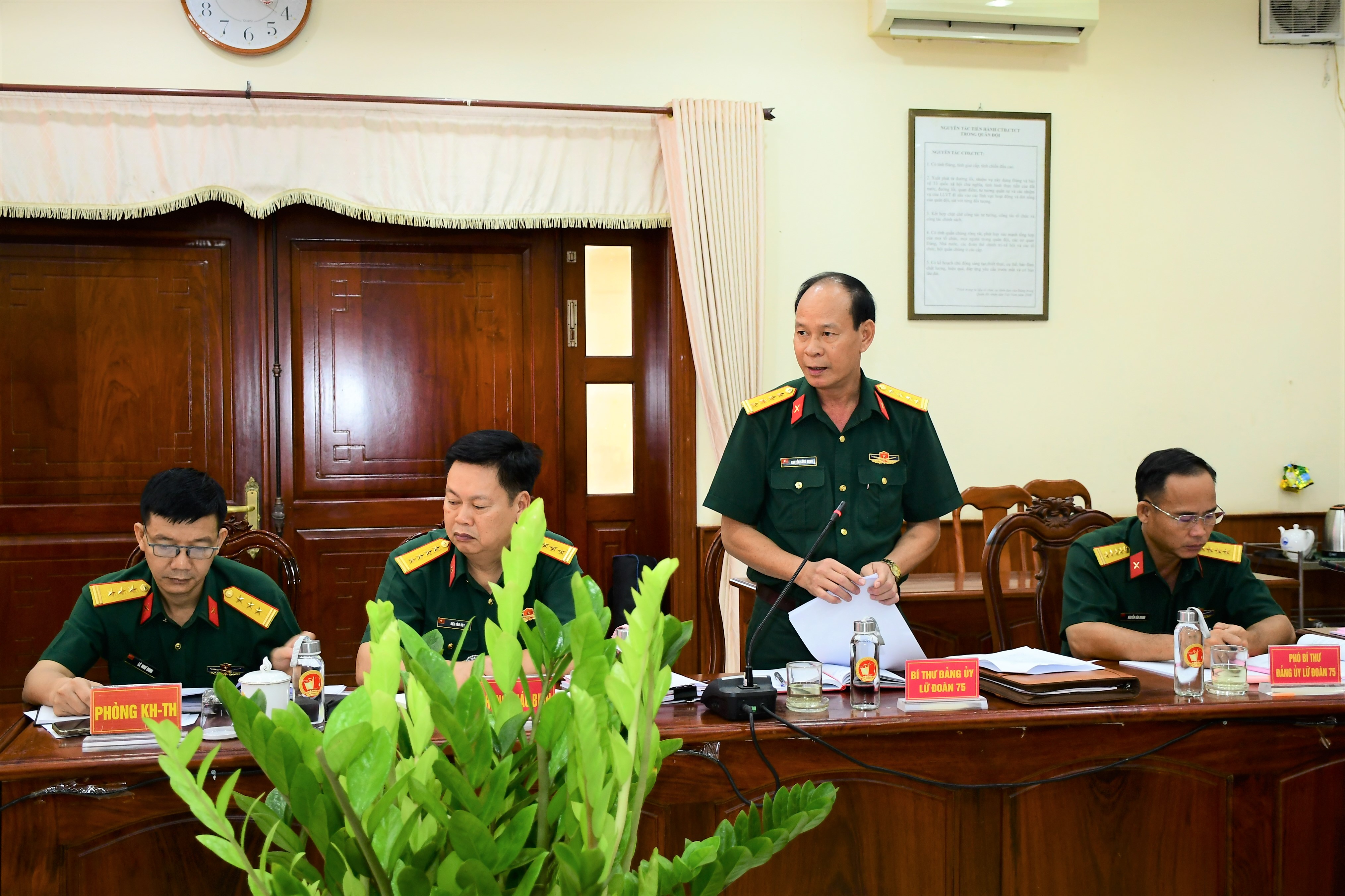 Thiếu tướng Trần Vinh Ngọc, Bí thư Đảng ủy, Chính ủy Quân khu chủ trì hội nghị.