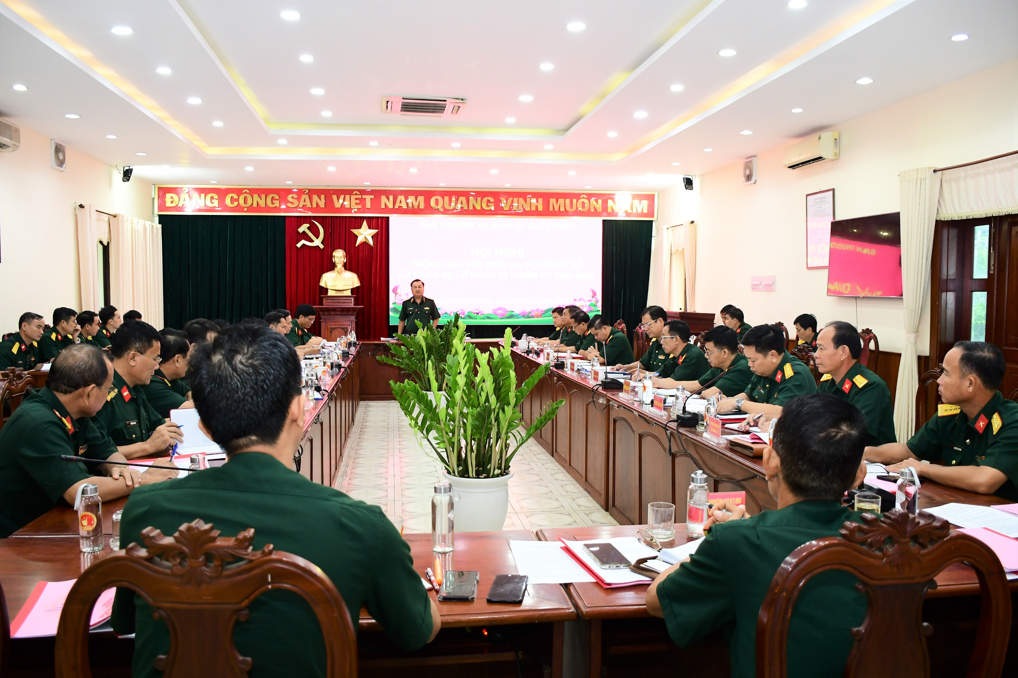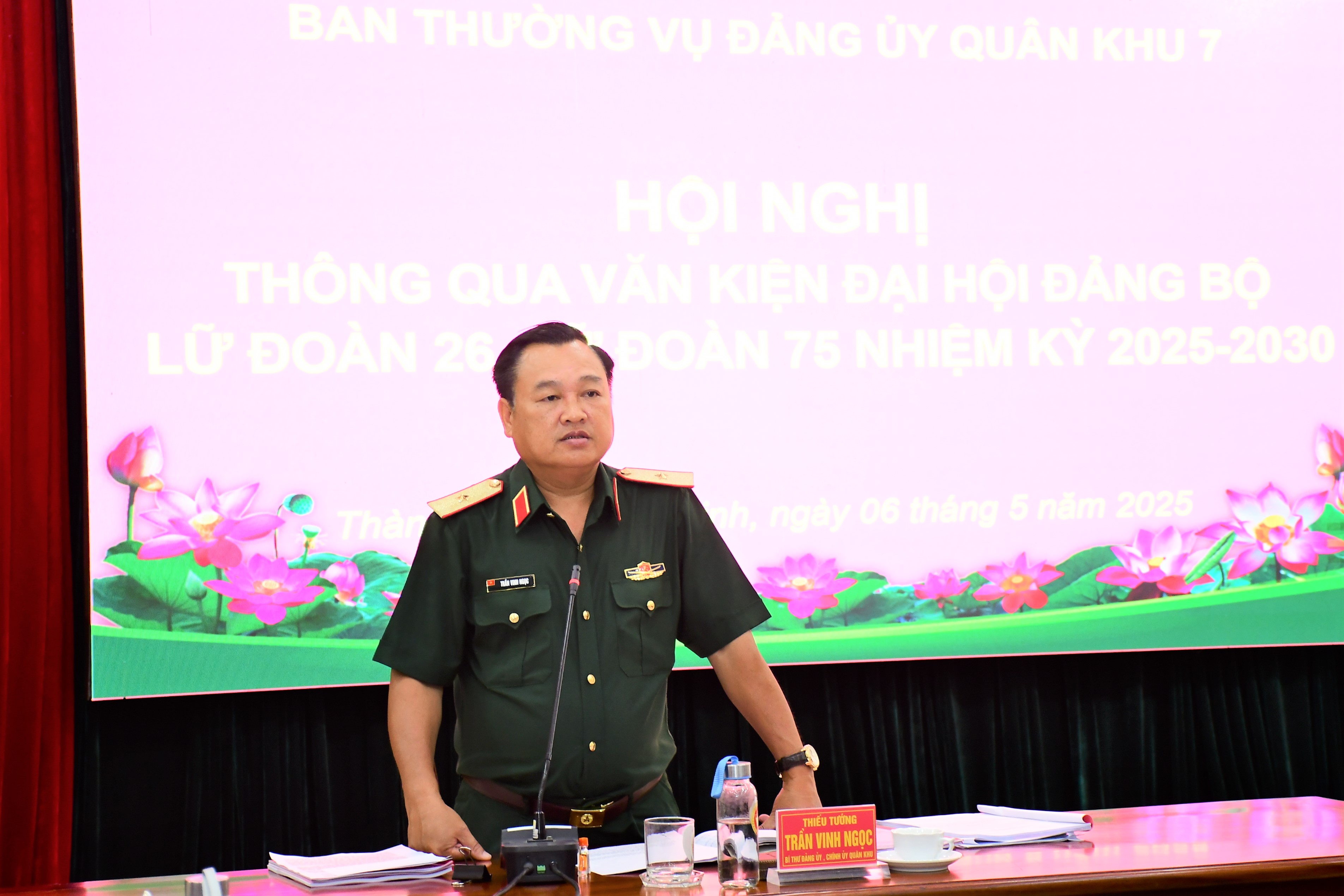 (QK7 Online) - Ngày 6/5, Ban Thường vụ Đảng ủy Quân khu 7 tổ chức hội nghị thông qua văn kiện Đại hội Đảng bộ Lữ đoàn 26 và Lữ đoàn 75, nhiệm kỳ 2025 - 2030. Thiếu tướng Trần Vinh Ngọc, Bí thư Đảng ủy, Chính ủy Quân khu chủ trì hội nghị.