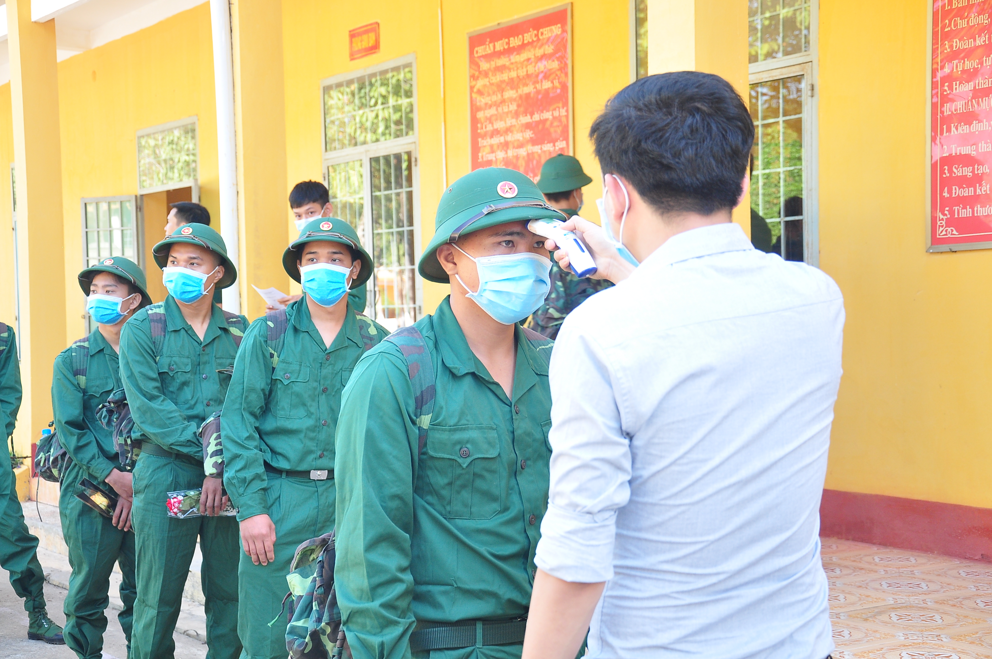 100% thanh niên nhập ngũ được test nhanh kháng nguyên trước ngày tổ chức lễ giao nhận quân. Khi có trường hợp dương tính, địa phương giữ lại theo dõi, điều trị đến khi được hội đồng khám sức khỏe nghĩa vụ quân sự kết luận đủ sức khỏe thì thực hiện giao nhận quân theo qui định. Đến đơn vị nhận quân, chiến sĩ mới tiếp tục theo dõi sức khỏe, thực hiện xét nghiệm SARS-CoV-2 khi có triệu chứng nghi ngờ và thực hiện cách ly, điều trị nếu phát hiện dương tính. Trong huấn luyện, đơn vị chia từng nhóm nhỏ bảo đảm giãn cách và thực hiện đầy đủ quy định 5K của Bộ Y tế.