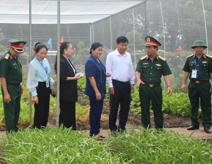 Đoàn công tác Bộ Quốc phòng và lãnh đạo tỉnh Bình Phước tham quan khu tăng gia sản xuất của chốt chiến đấu Dân quân thường trực xã Thanh Hòa, huyện Bù Đốp.