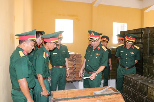 Thiếu tướng Du Trường Giang, Phó Tư lệnh Quân khu cùng đoàn công tác kiểm tra hệ thống các Kho vũ khí tại các đơn vị.