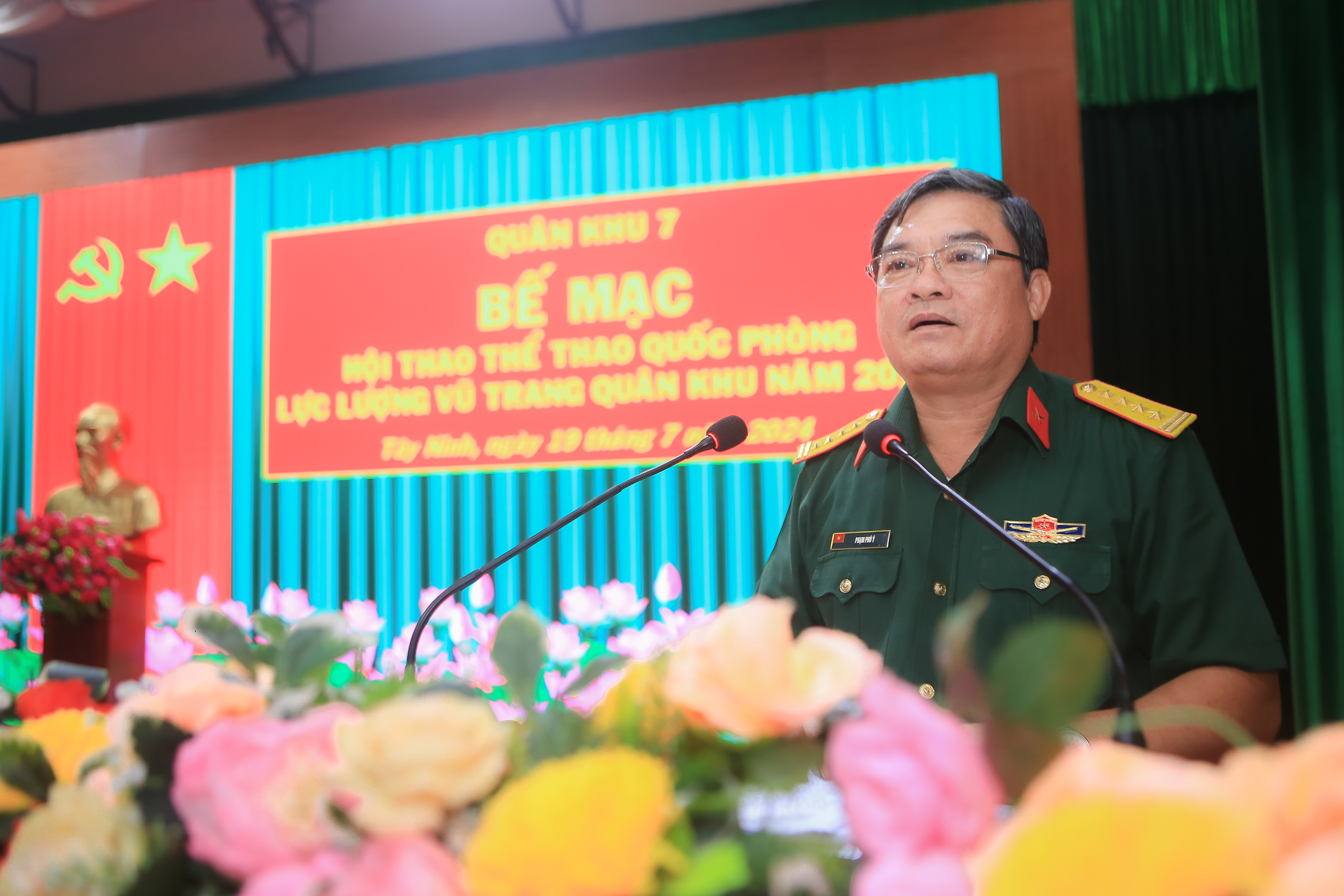(QK7 Online) - Chiều 19/7, tại Sư đoàn 5, Quân khu 7 tổ chức bế mạc Hội thao thể thao quốc phòng LLVT Quân khu năm 2024. Đại tá Phạm Phú Ý, Phó Tham mưu trưởng Quân khu dự và phát biểu bế mạc.