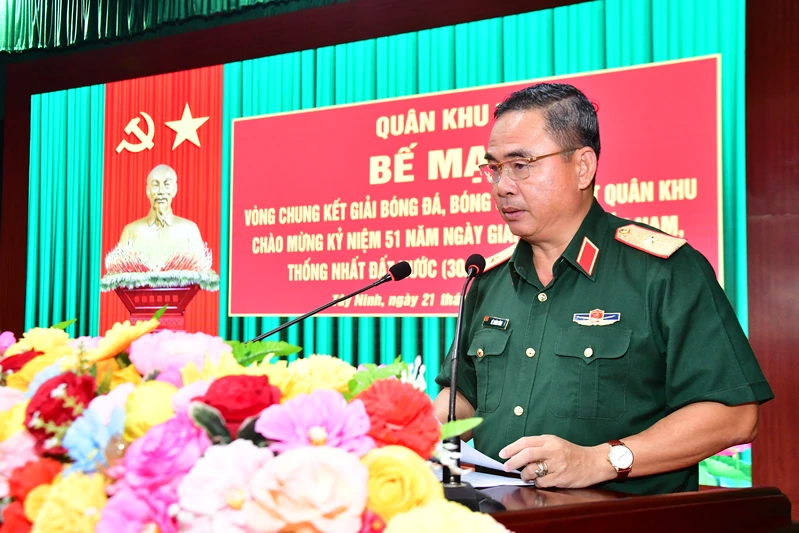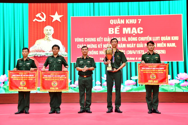 (QK7 Online) – Sáng ngày 21/4, tại Sư đoàn 5, Bộ Tư lệnh Quân khu 7 tổ chức bế mạc vòng chung kết giải bóng đá, bóng chuyền LLVT Quân khu chào mừng Kỷ niệm 51 năm Ngày giải phóng miền Nam thống nhất đất nước (30/4/1975 - 30/4/2026). Thiếu tướng Lê Xuân Bình, Phó Tư lệnh, Tham mưu trưởng Quân khu dự và phát biểu bế mạc. Dự bế mạc có Thủ trưởng các cơ quan, đơn vị trong LLVT Quân khu 7.